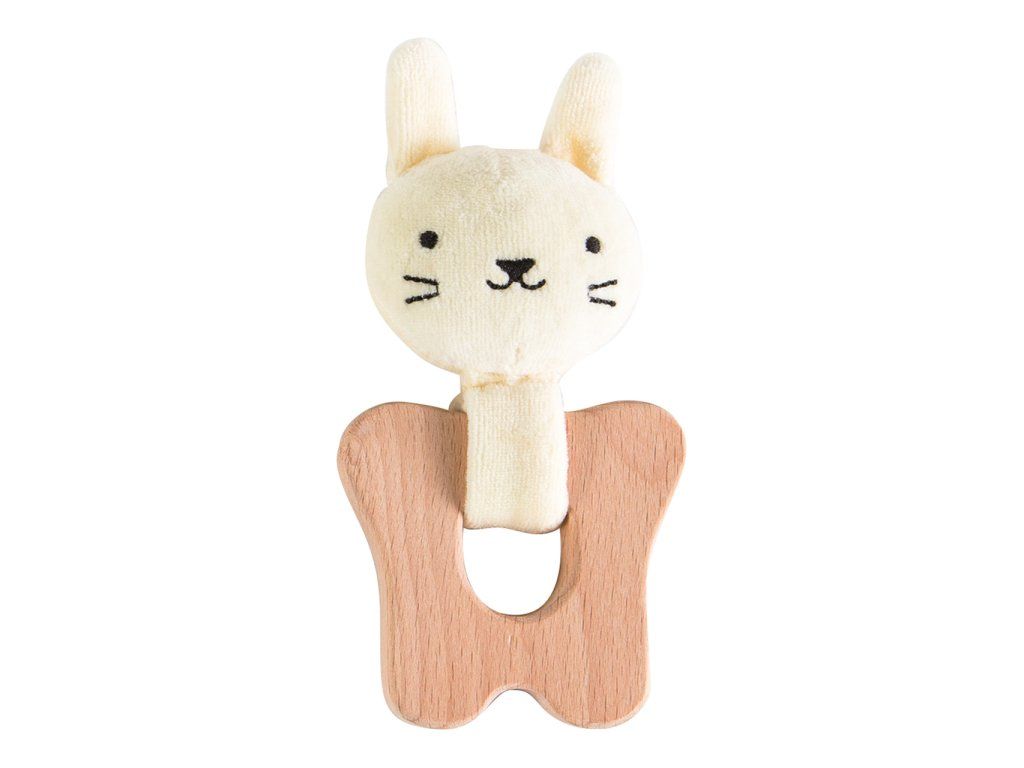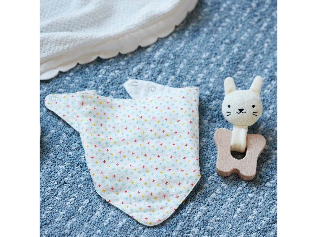 Roztomilý zajačik upokojí a zabaví Vaše dieťatko. Hryzačka je vyrobené z organickej bavlny a pevného FSC® certifikovaného bukového dreva. Je navrhnuté pre rúčky tých najmenších, dieťa ho ľahko uchopí. Súčasťou súpravy je savý vzorovaný biely podbradník z organickej bavlny, vybavený nastaviteľnými cvokmi. Balené bez použitia plastov. Hlavné vlastnosti: hryzačka a podbradníkvyrobené z 100% FSC® dreva Značka a certifikát FSC® (Forest Stewardship Council) zaručuje, že drevo, z ktorého bol výrobok vyrobený, nebolo vyťažené nelegálne a pochádza z lesov obhospodarovaných šetrným či prírode blízkym spôsobom, v ktorom sú dodržiavané prísne environmentálne a sociálne požiadavky. Značka FSC® na výrobku znamená, že svojim nákupom pomáhate chrániť lesy a podporujete šetrné, zodpovedné či prírode blízke hospodárenie, vďaka ktorému sú naše lesy stabilnejšie, zdravšie, majú prirodzenú druhovú skladbu a lepšie odolávajú negatívnym následkom klimatických zmien.Dodatočné parametre