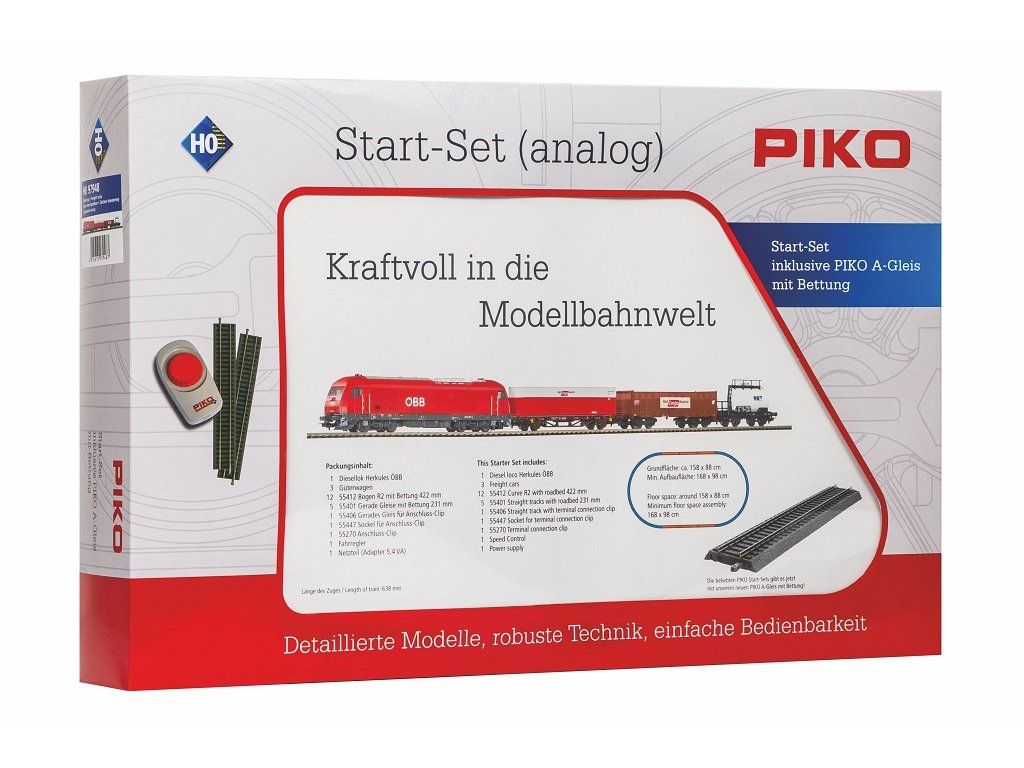 Štartovací set s dieselovou lokomotívou Herkules ÖBB a tromi nákladnými vozidlami je ideálnou voľbou pre začiatočníkov i modelárov, ktorí chcú kompletné riešenie bez nutnosti ďalších nákupov. Súčasťou balenia je koľajisko s podložím, ktoré umožňuje rýchle zostavenie a okamžité začatie prevádzky.Lokomotíva Herkules zaujme verným spracovaním a spoľahlivým pohonom, ktorý zaisťuje plynulý chod pri bežnej prevádzke. Nákladné vozidlá dopĺňajú súpravu a umožňujú realistickú prevádzku nákladného vlaku.Set obsahuje kompletnú výbavu – okrem vlaku aj ovál koľají, napájací zdroj a analógový regulátor. Vďaka tomu je možné začať jazdiť ihneď po zostavení bez nutnosti dokupovania ďalších komponentov.Použitý systém PIKO A-Gleis s podložím zaisťuje jednoduchú montáž a zároveň umožňuje ďalšie rozširovanie koľajiska podľa potrieb užívateľa. Špecifikácia: Mierka: H0Prevádzka: analógová (DC)Lokomotíva: dieselová Herkules ÖBBVozidlá: 3× nákladné vozidloDĺžka súpravy: cca 638 mmKoľaje: PIKO A-Gleis s podložímRozmer koľajiska: cca 158 × 88 cm (min. priestor 168 × 98 cm)minimálny polomer oblúka: 358 mmdigitálne rozhranie: NEM 652 (možnosť digitalizácie)osvetlenie: smerovo závislé biele / bieleSpriahlo: NEM šachta (bez kinematiky krátkeho spriahadla)Napájanie: sieťový zdroj (súčasťou)Ovládanie: analógový regulátor (súčasťou)Špeciálny prvok: figúrka rušňovodiča v stanovišti Hlavné vlastnosti: kompletný štartovací set – vlak, koľaje aj ovládanie v balenídieselová lokomotíva Herkules ÖBB + 3 nákladné vozidlákoľaje s podložím pre jednoduchú a rýchlu montážanalógové ovládanie - ideálne pre začiatočníkovplynulý a spoľahlivý chod lokomotívymožnosť neskoršej digitalizácie (rozhranie NEM 652)smerovo závislé osvetleniemožnosť rozšírenia koľajiska o ďalšie prvkyDodatočné parametre