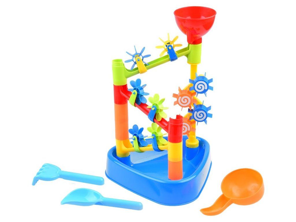 Fantastická herní sada s mlýnkem bude perfektní nejen pro pískoviště. Mlýnek se dá použít jak na vodu, tak i pro hraní na písku. Nalijte vodu do vrchní části (trychtýře) mlýnku a sledujte, jak stéká po dráze dolů a roztáčí ozubená kolečka . Výška mlýnku: 41,5cm Vhodné pro děti od 3 let.Dodatočné parametre