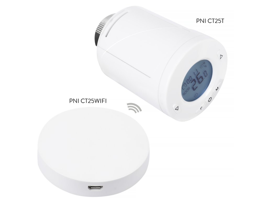 PNI CT25WIFI internetový rozbočovač pre termostatickú hlavicu PNI CT25T, na reguláciu teploty radiátorov z mobilnej aplikácie Tuya Smart, integrácia scenárov a inteligentná automatizácia s ďalšími kom