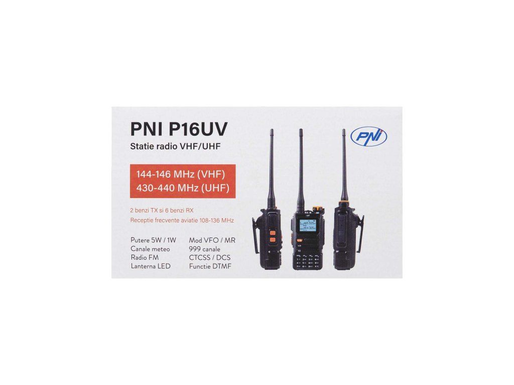 Prenosná VHF/UHF rádiostanica PNI P16UV 999 kanálov, dvojpásmové TX a 6 RX pásiem, prenos VOX, Scan, FM rádio, meteorologické kanály, Li-Ion 2600 mAh