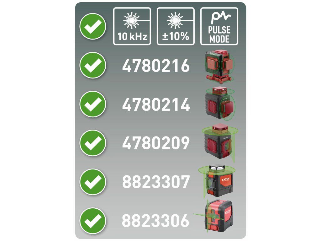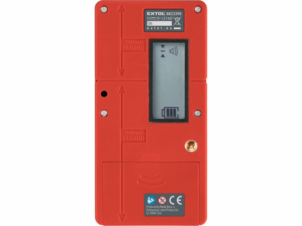 vhodný pre laserové vodováhy s pulzným režimom 4780208, 4780209, 4780214, 4780216, 8823306, 8823307, 8823312- LCD signalizačný displej na oboch stranách, možnosť voľby zvukovej signalizácie, automatické vypnutie po cca 10min nečinnosti prístroja