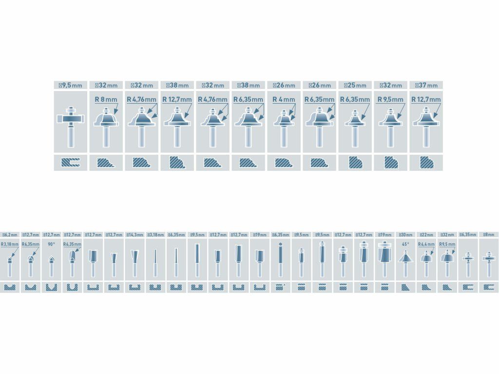 na vytváranie drážok a profilov do tvrdého dreva, plastov, lisovaných dosiek a pod. pomocou hornej frézkyDodatočné parametre