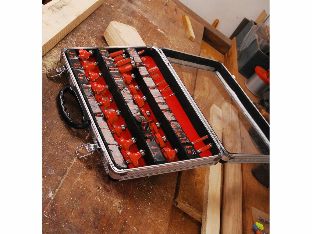 Profilové frézy HSS s SK plátkami, 35-dielna sada, hliníkový kufor