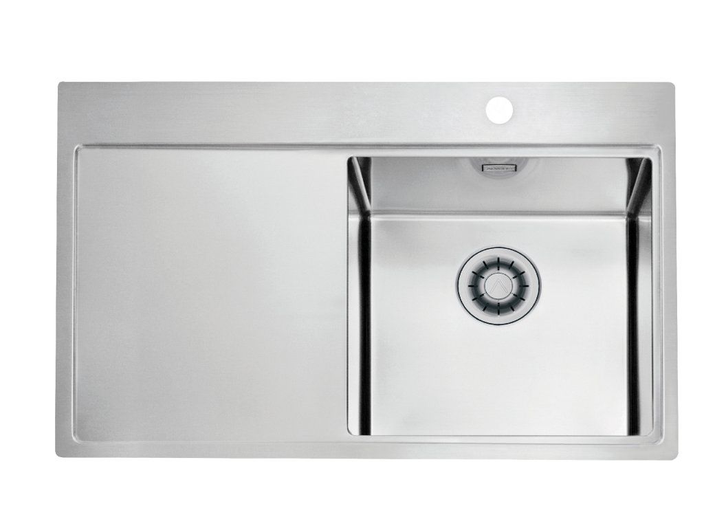Plně a plošně vestavěný dřez (F/S) Vanička vpravo Provedení : KMB Vyrobeno z nerezové oceli CrNi 18/10 Vnější rozměr: 790x525 mm Odtoková souprava s přepadem a 3 1/2 sítkem, QC Úchyty a těsnění pro upevnění dřezu v balení S otvorem pro baterii Návod pro instalaci v obrázcích na obale Instalace do skříňky o šířce 450 mmDodatočné parametre