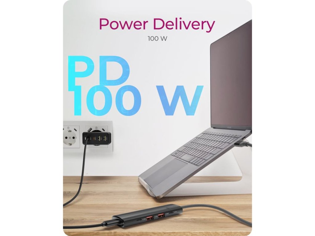 Power Delivery (PD) až 100 W: Už žiadne problémy s nabíjaním! Integrovaný vyhradený port Type-C pre Power Delivery poskytuje až 100 wattov energie. To vám umožní nabíjať váš notebook, tablet a smartfón súčasne a efektívne, udržiavajúc vaše zariadenia plne nabité a pripravené na akciu. (Poznámka: USB Power Delivery je dostupné len cez hostiteľský počítač Type-C? s podporou USB Power Delivery.)