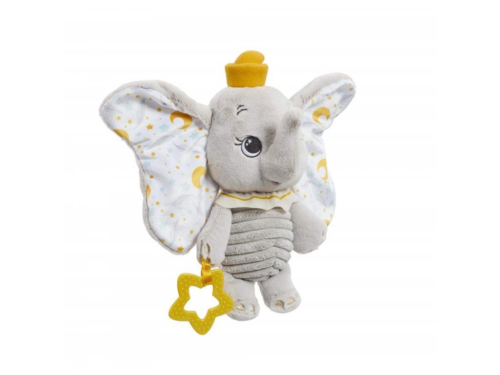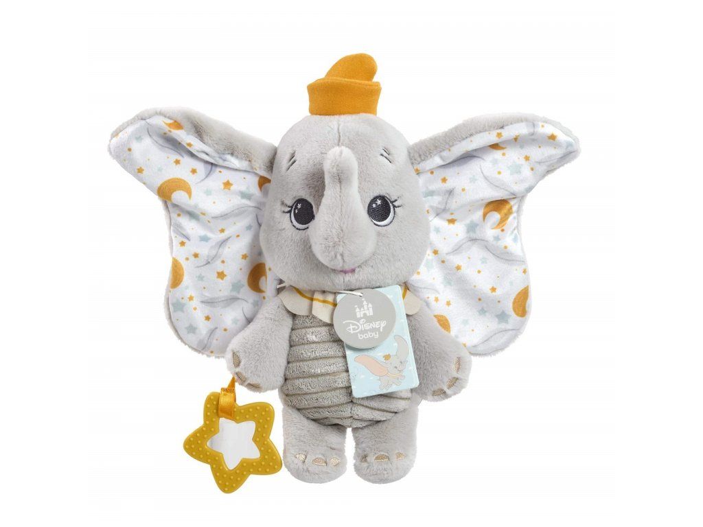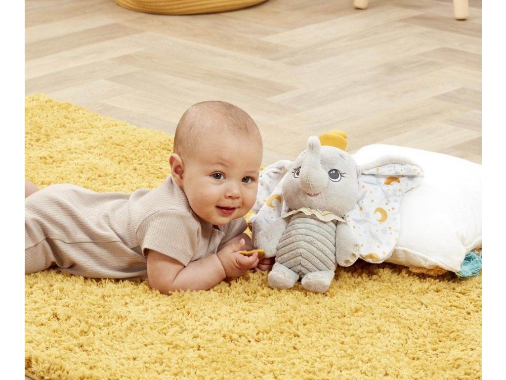 Zoznámte sa s prvou maznavou hračkou vášho bábätka. Deti si zamilujú túto plyšovú hračku, sloníka Dumba. Tento jemný plyšový kamarát je vyrobený z mimoriadne hebkého, pre bábätká bezpečného materiálu a zdobený decentnou výšivkou, ktorá je šetrná aj k citlivej detskej pokožke.Roztomilý sloník s ikonickými veľkými uškami a milým výrazom prináša dokonalú kombináciu hebkosti a hravosti. Vďaka rôznorodým textúram, štítkom a hryzátku v tvare hviezdičky pomáha nielen upokojiť citlivé ďasná, ale tiež podporuje raný zmyslový vývoj dieťaťa.Ľahký a ideálne prispôsobený malým detským ručičkám podporuje samostatné upokojenie a stane sa obľúbeným spoločníkom pri zaspávaní, odpočinku aj na cestách. Vďaka kvalite a tradícii značky Disney ide o nadčasovú hračku, ktorá prináša pocit bezpečia, radosti a kúzlo obľúbených príbehov už od prvých dní. Hlavné vlastnosti: extra jemný, pre bábätká bezpečný plyšový materiálšetrné vyšívané detaily vhodné pre citlivú pokožkuikonický dizajn sloníka Dumba s veľkými uškamirôznorodé textúry a štítky pre zmyslový rozvojhryzátko v tvare hviezdičky pre úľavu pri raste zúbkovvhodné na upokojenie, zaspávanie aj cestovaniekvalita a dôveryhodnosť značky Disneyrozvíja motoriku dieťaťatrénuje koordináciu ruka-okoDodatočné parametre