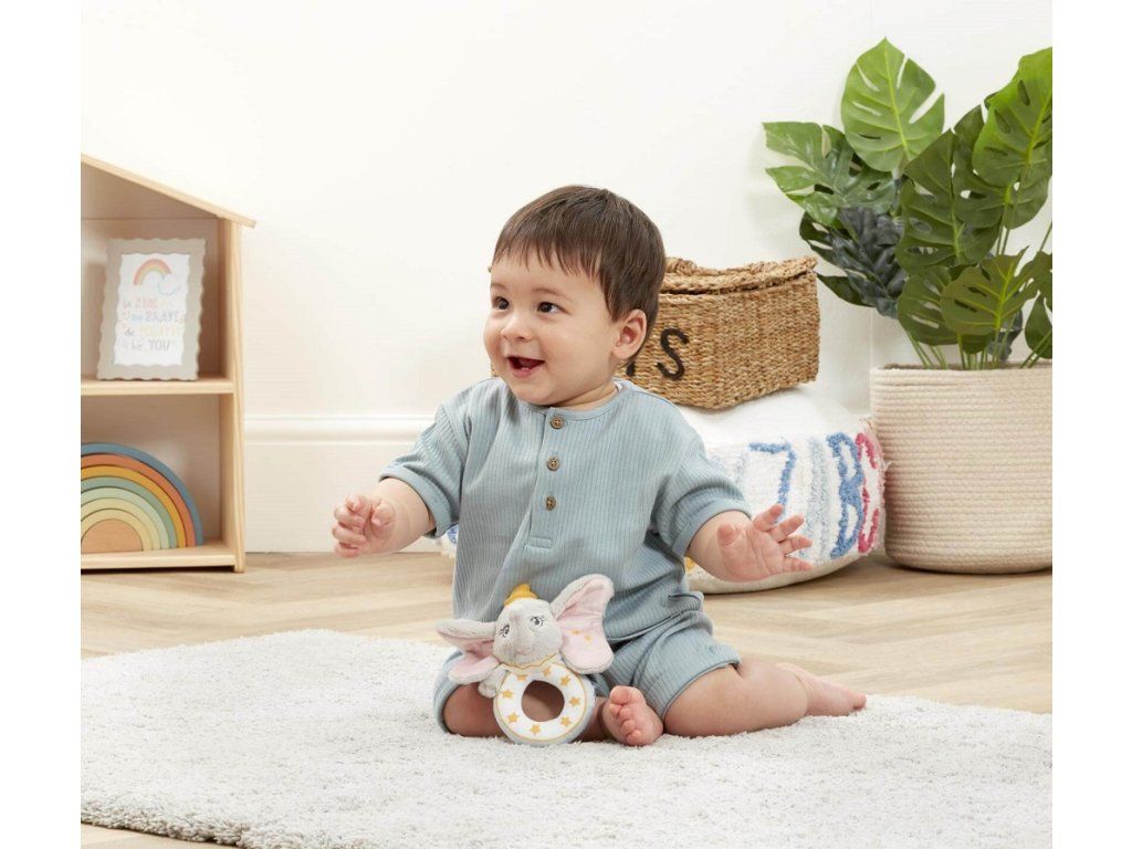 Potešte svoje bábätko roztomilou hrkajúcou hračkou, ktorá je navrhnutá špeciálne pre malé detské ručičky. Obľúbený sloník Dumbo v mäkkom plyšovom prevedení si okamžite získa pozornosť a stane sa milovaným spoločníkom pri každodennom objavovaní.Ľahká konštrukcia uľahčuje uchopenie, trasenie i skúmanie, zatiaľ čo jemný hrkavý zvuk stimuluje sluch a podporuje prirodzený zmyslový vývoj dieťaťa. Hračka tak spája zábavu s rozvojom a prináša radosť z každého pohybu.Vyrobená z bezpečných materiálov vhodných pre bábätká, je ideálna nielen na hranie, ale aj na maznanie a upokojenie. Vďaka ľahkej údržbe a odolnému prevedeniu vydrží každodenné používanie. Táto očarujúca hrkálka je vhodná už od narodenia a skvele doplní výbavu každého bábätka ako prvý hravý aj upokojujúci spoločník. Hlavné vlastnosti: vhodné od narodeniaplyšová hrkajúca hračka s motívom Dumboľahká a ľahko uchopiteľná pre malé rukyjemný hrkavý zvuk podporujúci sluchové vnímaniepodpora zmyslového vývoja dieťaťabezpečné materiály vhodné od narodeniavhodné na hranie, maznanie i upokojenieľahká údržba a odolné spracovaniekvalita a dizajn značky Disneyperfektné ako darček pre novorodencovDodatočné parametre