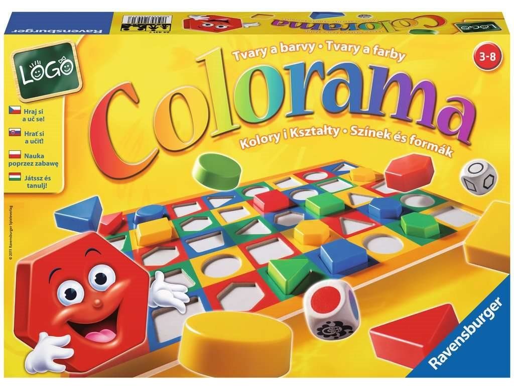 Tato klasická dětská hra je zábavným úvodem do světa barev a tvarů. Nabízí více variant pro různé stupně vývoje. Cílem hry je uspořádání herních dílků podle barvy a tvaru a jejich umístění do odpovídajících otvorů. Obsah balení: 1 herní deska, 40 herních dílků ve 4 různých barvách (červená, modrá, zelená a žlutá) v 5 rozdílných tvarech (kruh, čtverec, trojúhelník, šestiúhelník a lichoběžník), 1 hrací kostka s barvami, 1 kostka s tvary, 1 návod ke hře.Dodatočné parametre