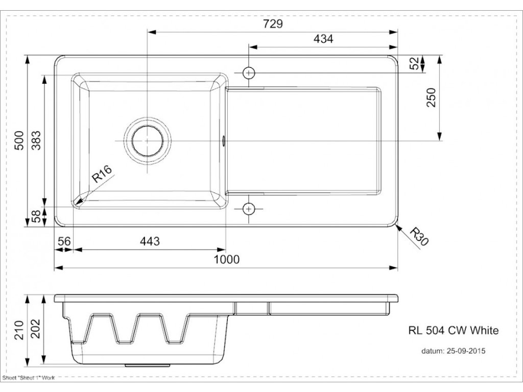 Drez si môžete orientovať podľa vašich preferencií odkvap vpravo alebo vľavo. Glazúra drezu je hladká, dlhodobé pôsobenie slnečných lúčov alebo dokonca agresívne materiály nezmení ani farbu ani povrch drezu.
