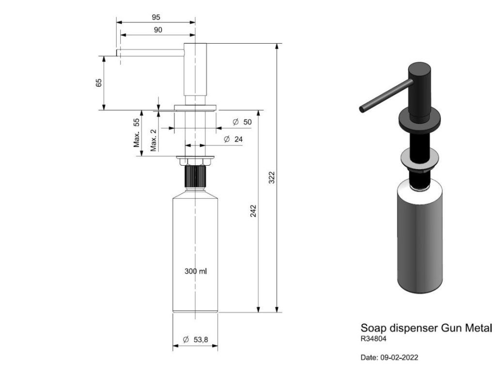 Dávkovač saponátu Reginox Gun metal (R34804) je určený na zapustenie. Dávkovače na zapustenie fungujú ako neviditeľná nádrž na čistiace prostriedky. Nádobka je vždy skrytá pod úrovňou dosky a nezaberá toľko potrebné miesto na pracovnej ploche.