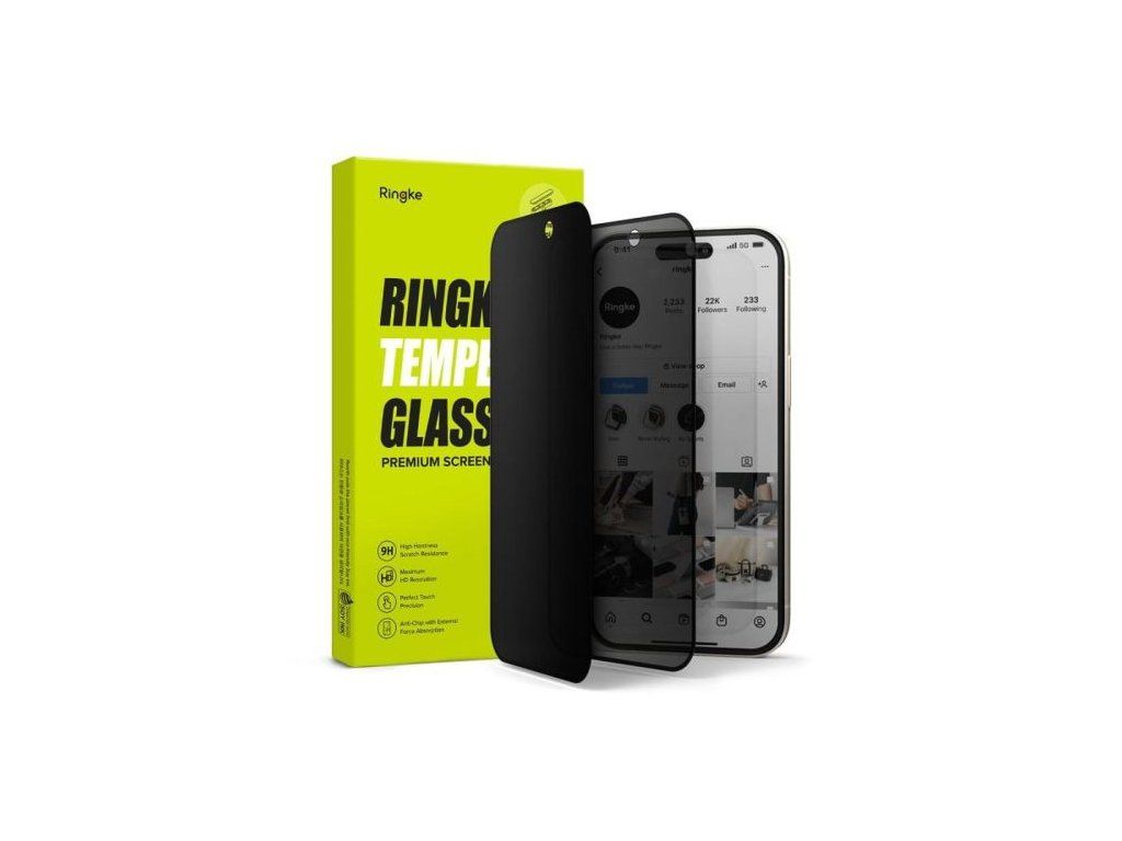 Ringke iPhone 15/ 16 Screen Protector Easy Slide Privacy Tempered Glass 9H with installation jig (2pcs) Transparent