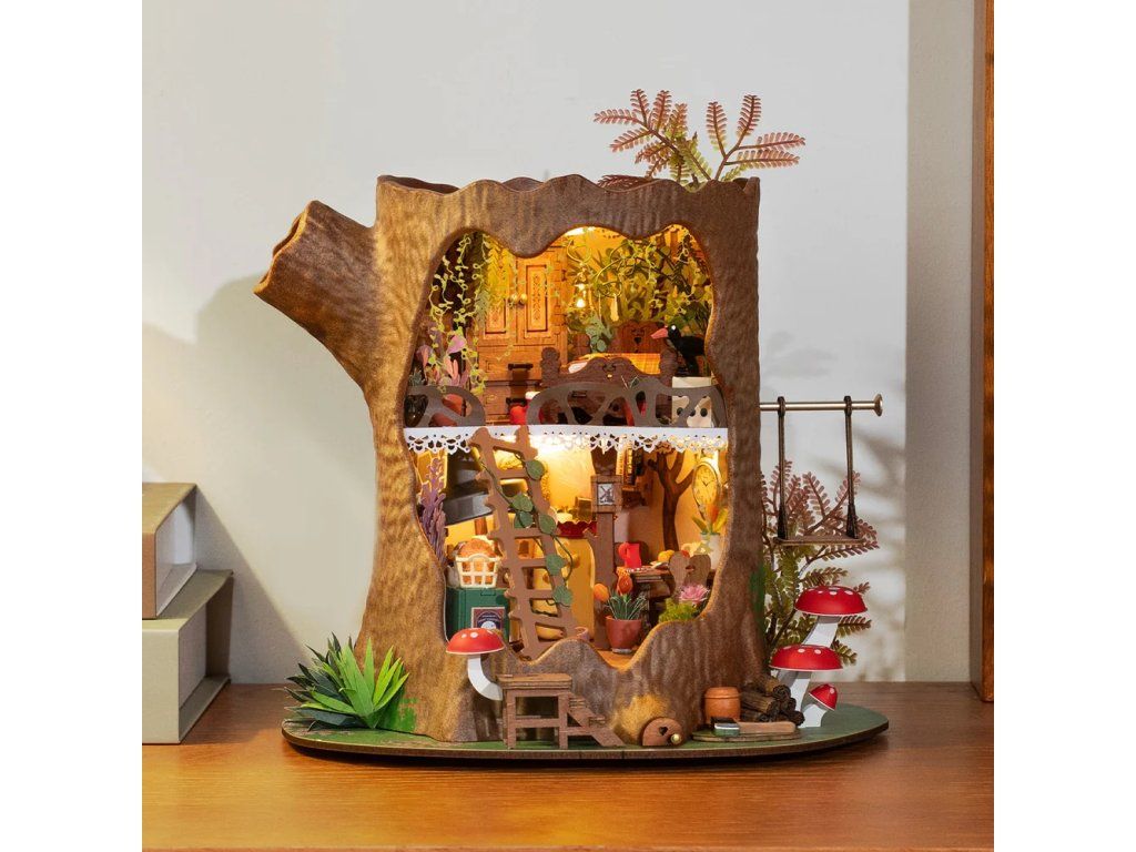 Vstúpte do kúzelného lesa, kde v pevnom kmeni stromu žijú drobné lesné tvory. Príroda je ich ihriskom a zabudnuté ľudské drobnosti sa v ich rukách menia na dômyselné vybavenie domova. Hlboko v lese sa ukrýva malý domček v strome, zasadený do srdca starého pňa. Lesní obyvatelia s neobyčajnou vynaliezavosťou dávajú nový život strateným či vyhodeným predmetom ľudí – hodinky bez remienka sa premenia na nástenné hodiny, kocky poslúžia ako malé stolíky a lievik sa stane digestorom. Tento jednoduchý, ale útulný dvojposchodový domček má všetko, čo je potrebné na pohodlný život. Drevený nábytok, príjemnú spálňu, kuchyňu s jedálenským kútom, spotrebiče, nástenné dekorácie, kvetináče, hubovú záhradku a dokonca aj hojdačku. Čo viac si priať, keď je príroda vašim susedom a roztomilosť každodenným spoločníkom. Postavte si tento kúzelný lesný domov, vytvorte jeho príbeh a po rozsvietení LED svetiel premeňte svoj projekt na očarujúce expozíciu.Táto 3D skladačka je skvelým spôsobom, ako si užiť kreatívne a edukatívne hranie a zároveň vytvoriť nádherný model s LED osvetlením, ktorý sa môže stať netradičným darčekom či ozdobou interiéru. Skladanie 3D skladačky podporuje rozvoj jemnej motoriky, priestorového myslenia a trpezlivosti. Pozvite svoju rodinu alebo priateľov a užite si zábavné tvorenie bez nutnosti použitia lepidla alebo nástrojov. Všetky diely skladačky sú presne vyrezané, a ľahko do seba zapadnú, aby výsledok bol stabilný a odolný. Je dodávaná v nezloženom stave, zabalená v krabici s podrobným návodom na zostavenie a na napájanie slúži 2 AAA/LR03/AM4 1,5 V (nie sú súčasťou balenia). Hlavné vlastnosti: 275 presných dielikovdoba skladania 8 hodínbez použitia lepidlavysoká obtiažnosť zostaveniarozvíja logické a motorické zručnostipodporuje trpezlivosť detíideálna ako darček alebo jedinečná dekoráciapodrobný návod na zostavenie súčastí baleniaLED osvetleniena napájanie slúžia 2 batérie AAA/LR03/AM4 1,5 V (nie sú súčasťou balenia)Dodatočné parametre