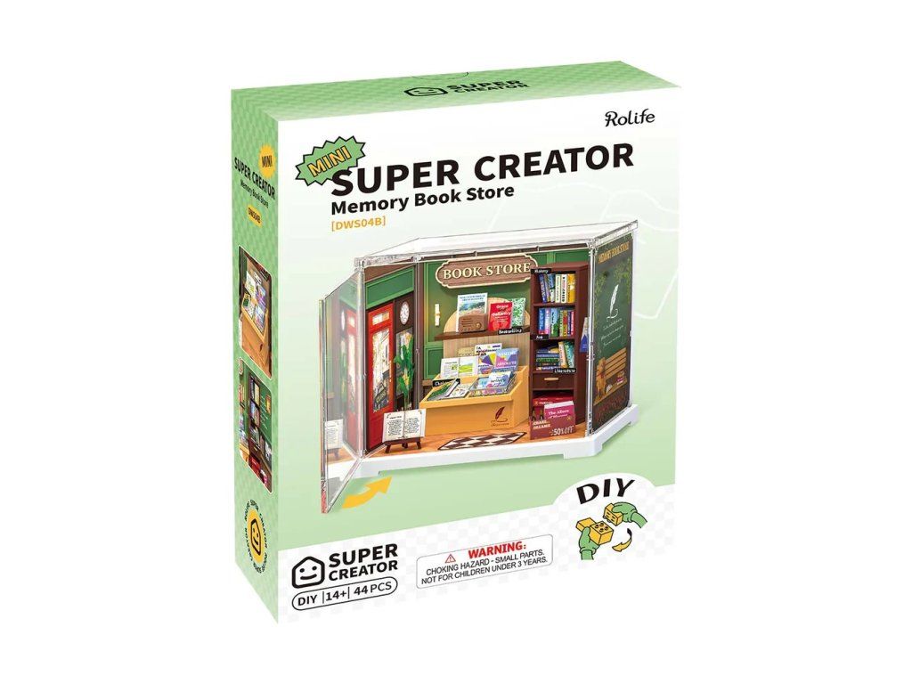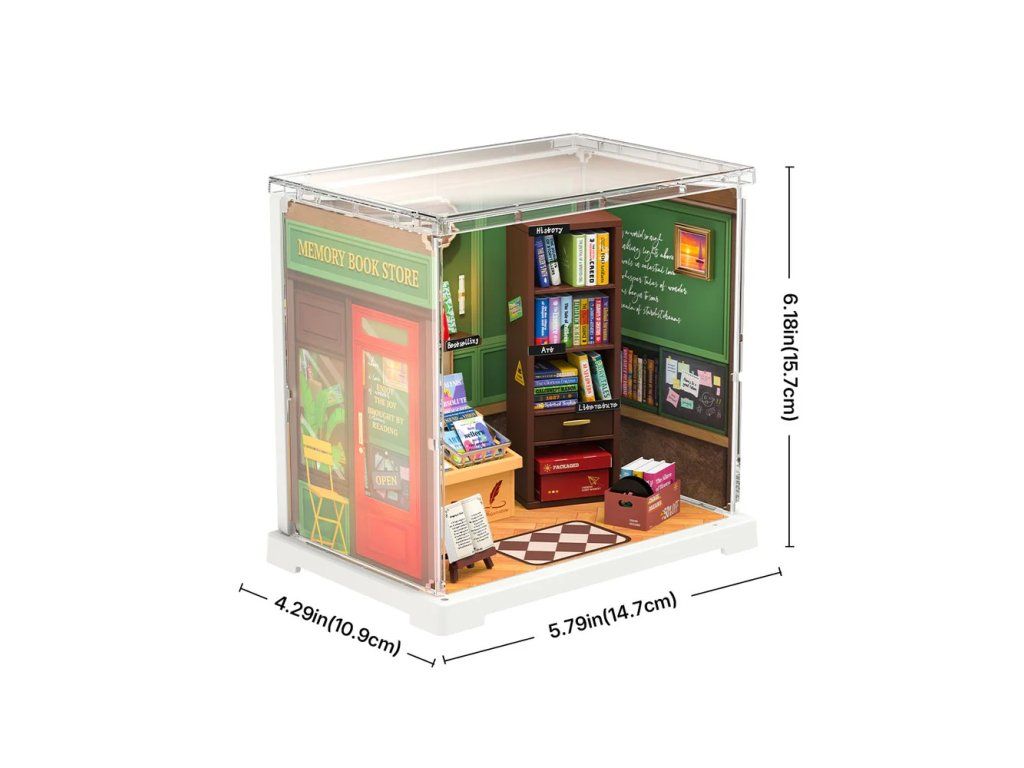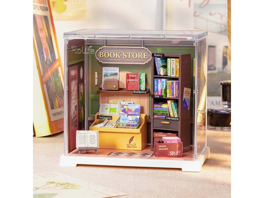 RoboTime 3D drevená skladačka Miniatúra domčeka mini Kníhkupectvo