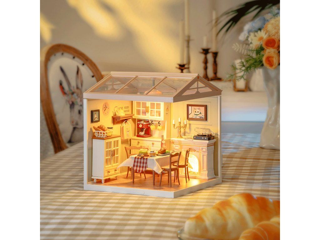 RoboTime 3D drevená skladačka Miniatúra domčeka Útulná jedáleň