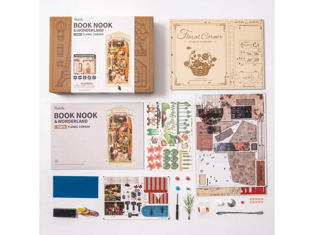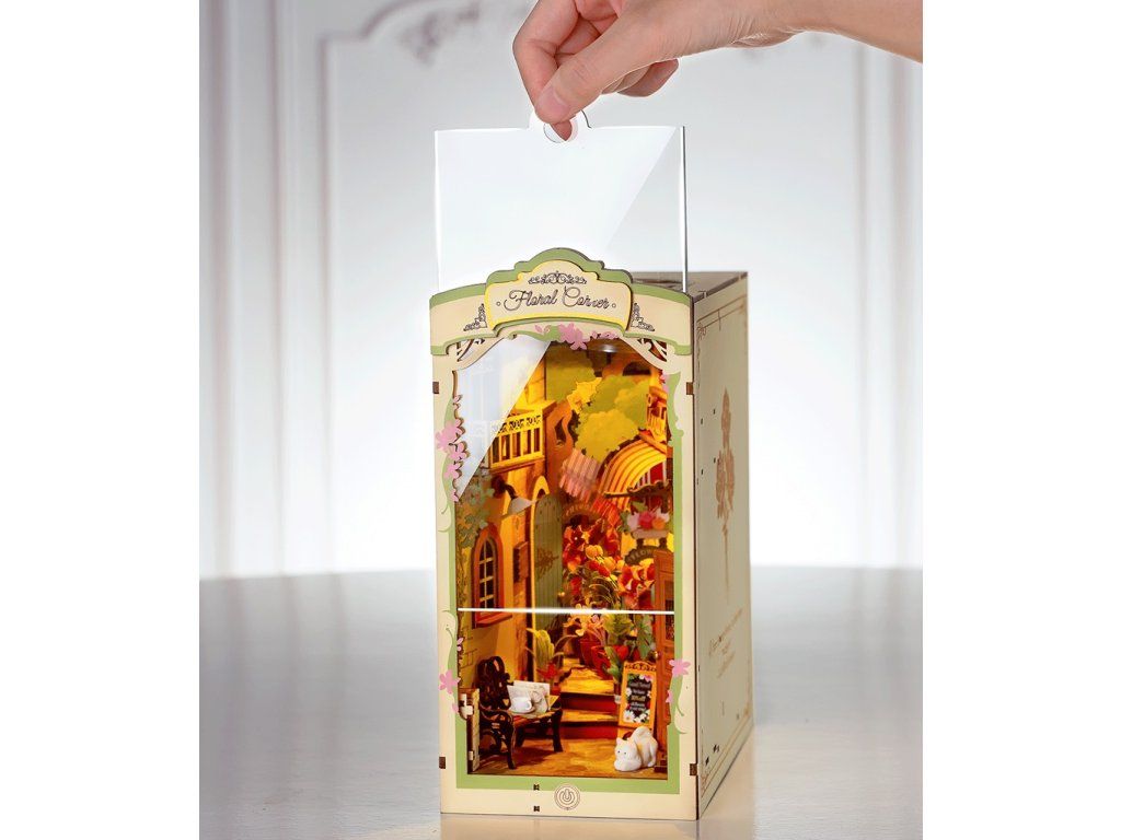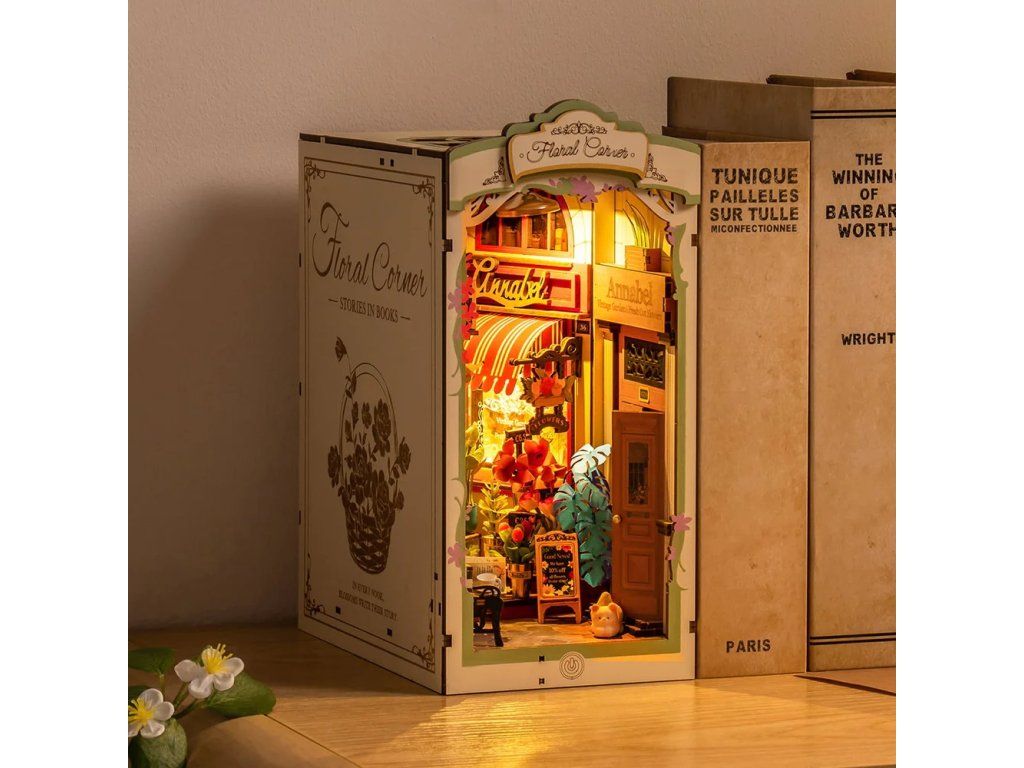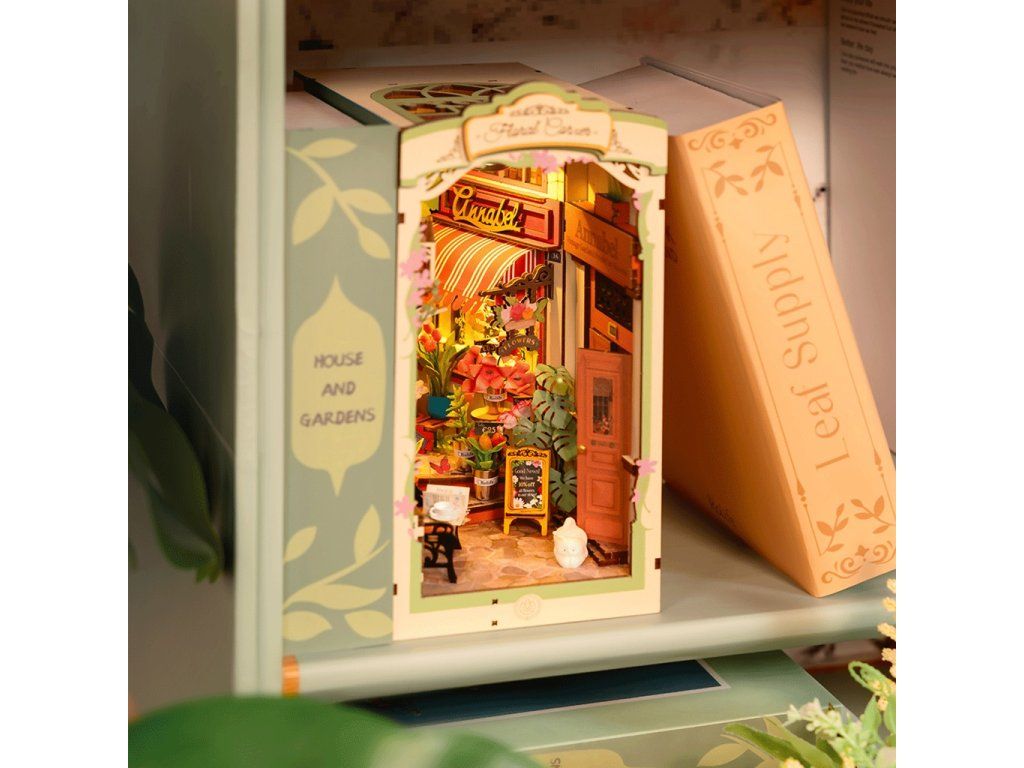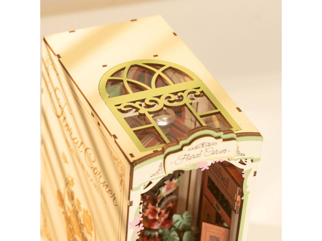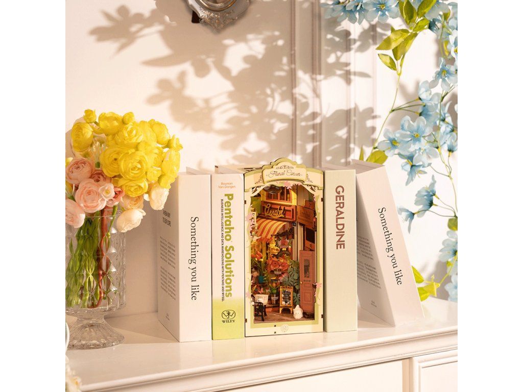RoboTime 3D skladačka Zarážka na knihy Miniatúra domčeka Kvetinový kútik