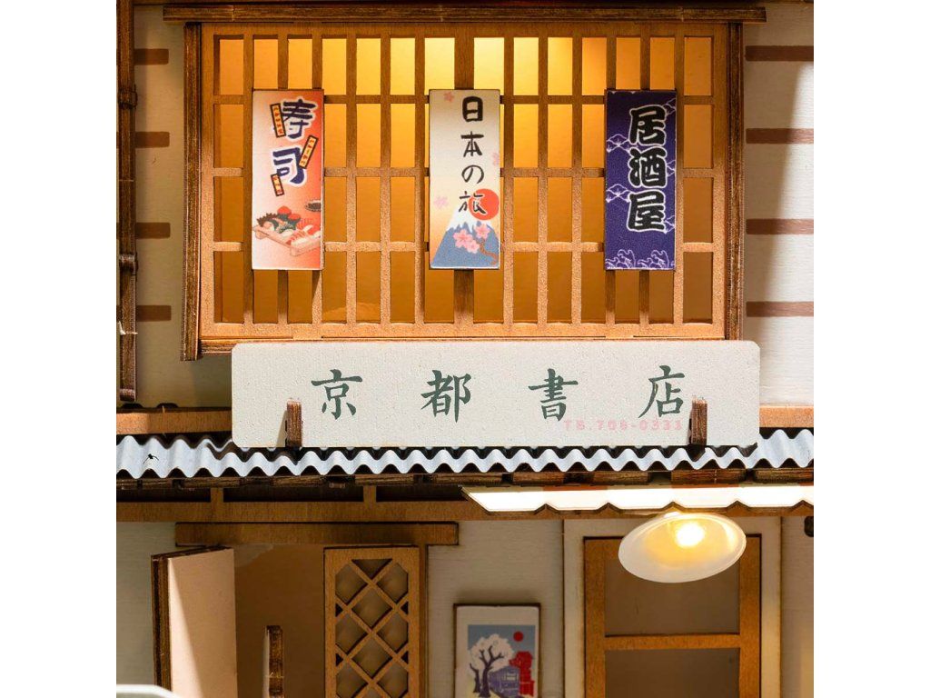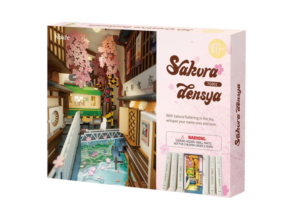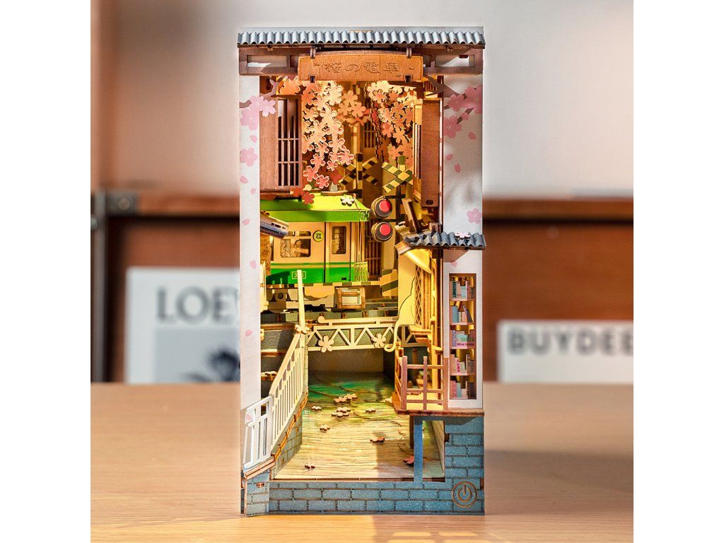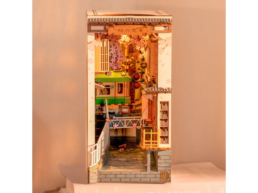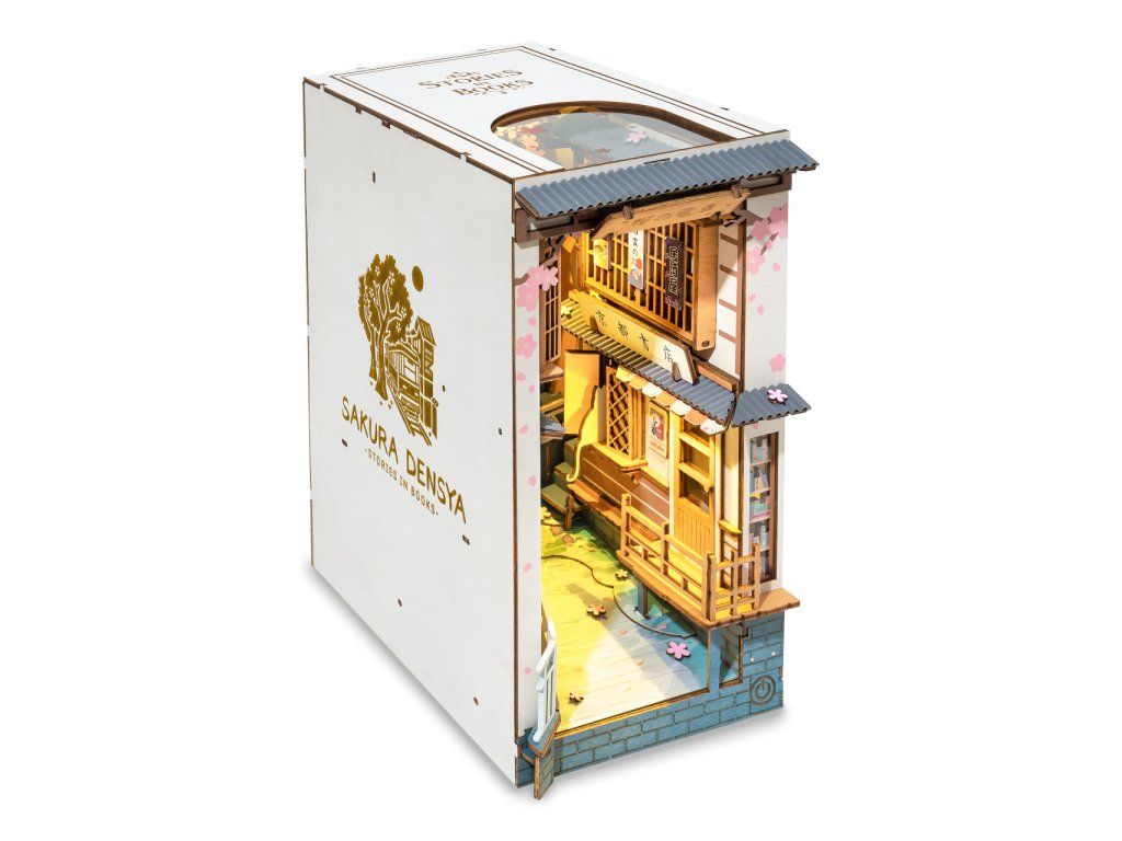 RoboTime 3D skladačka Zarážka na knihy Miniatúra domčeka Sakurová ulička