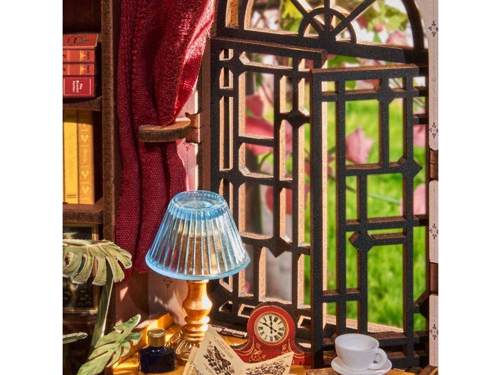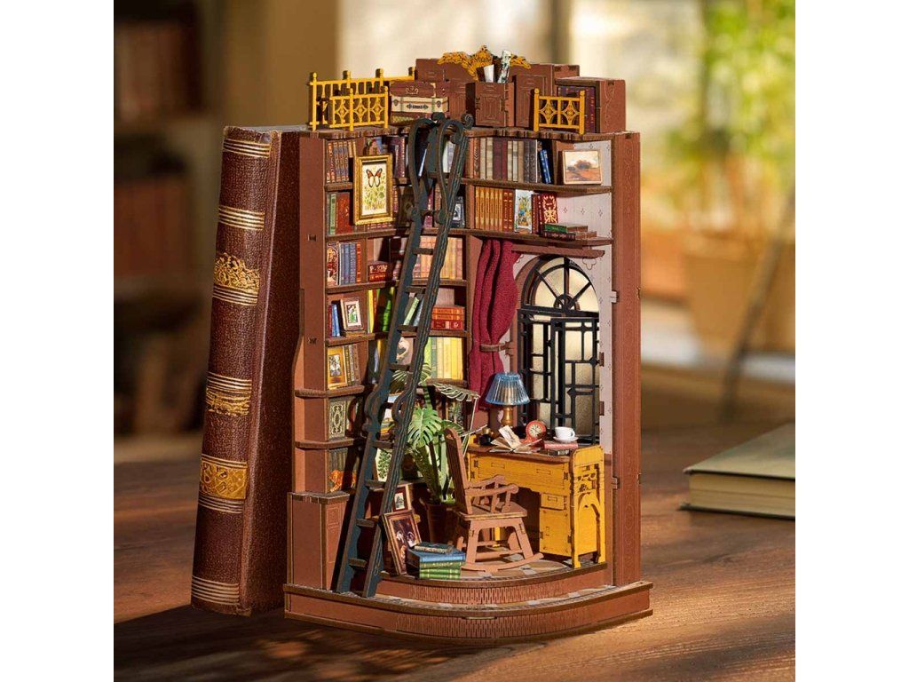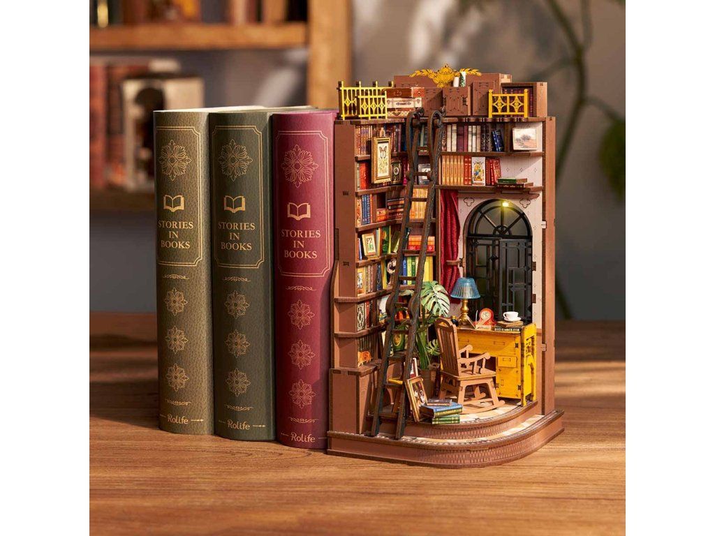 RoboTime 3D skladačka Zarážka na knihy Miniatúra domčeka Tichý študijný kútik