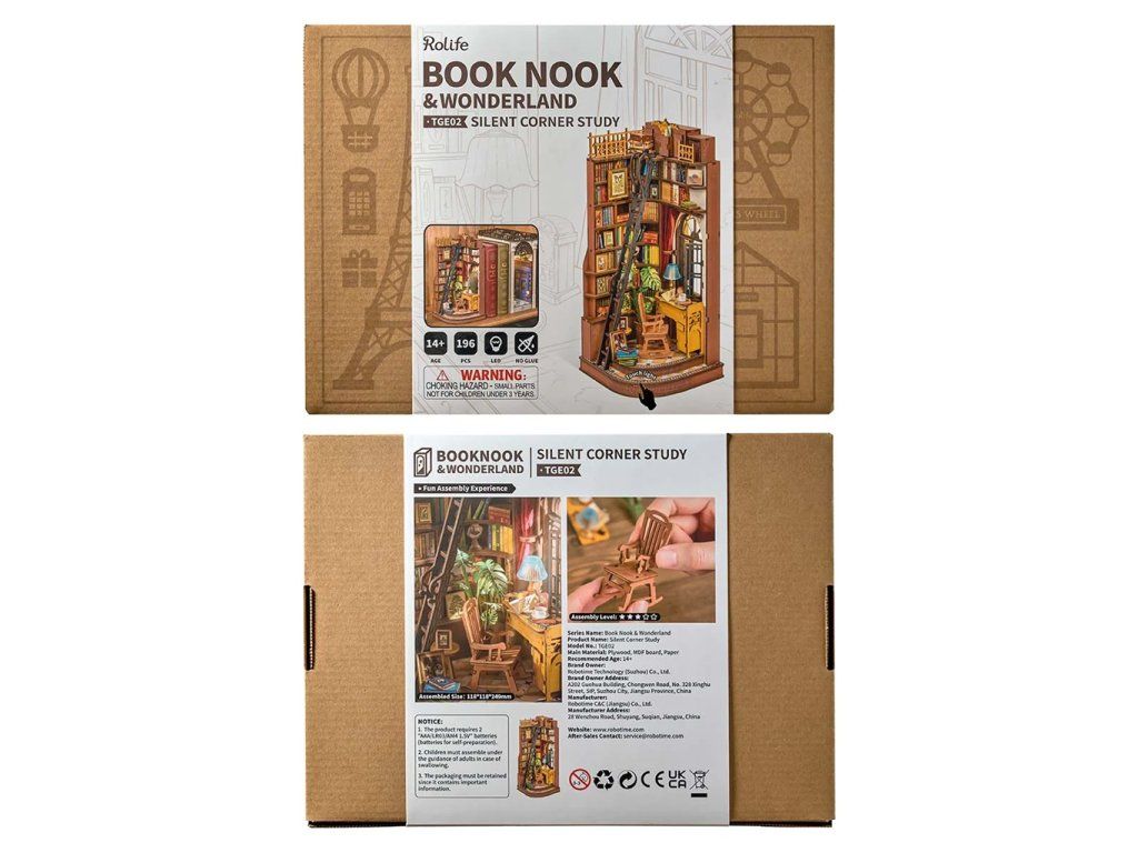 Keď je svet okolo Vás hlučný, pokoj nájdete v tichom zákutí s knihovníčkou v útulnej študovni v britskom elegantnom štýle. V každom detaile sa odráža pokojná atmosféra starobylej knižnice, od vintage políc, cez štýlový nábytok až po premyslené doplnky, ktoré dohromady vytvárajú uzavretý svet plný ticha a sústredenia. Klasická dlažba s motívmi hviezd a geometrických vzorov odkazuje na začiatok 20. storočia a dodáva scéne historickú atmosféru. Zarážka na knihy a dekorácie v jednom krásne prepája praktickosť s estetikou a oživí každú knižnicu, čitateľský kútik či pracovný stôl. 3D skladačka je skvelý spôsob, ako si užiť kreatívne a edukatívne hranie a zároveň vytvoriť nádherný model, ktorý sa môže stať netradičným darčekom či ozdobou interiéru. Skladanie podporuje rozvoj jemnej motoriky, priestorového myslenia a trpezlivosti. Je to možnosť, ako kombinovať zábavu so vzdelávaním. Všetky presne vyrezané dieliky do seba ľahko zapadnú bez použitia lepidla či nástrojov, aby výsledok bol stabilný a odolný. Skladačka je dodávaná v nezloženom stave, zabalená v škatuli s podrobným návodom na zostavenie. Na napájanie slúži 2x AAA /LR03/AM4 1,5 V (nie sú súčasťou balenia). Hlavné vlastnosti: 196 dielikovdoba skladania 3 hodinystredná obtiažnosť zostaveniaLED osvetleniezostavenie bez použitia lepidla a nástrojovvýnimočný vzhľadvhodné pre deti i dospelýchrozvíja logické a motorické zručnostipodporuje trpezlivosť detíideálny darček alebo jedinečná dekorácianapájanie pomocou 2x AAA /LR03/AM4 1,5 V (nie sú súčasťou balenia)Dodatočné parametre