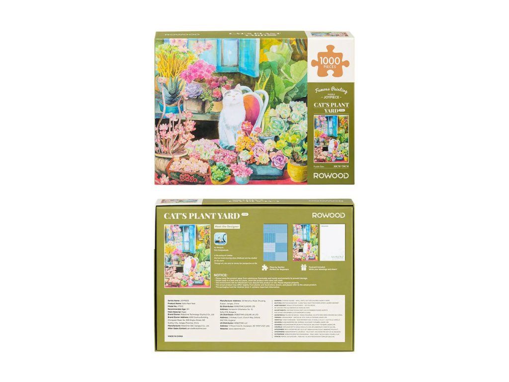 Relaxujte v kúzelnom záhradnom raji s týmto puzzle o 1000 dielikoch. Očarujúca skladačka zachytáva zvedavú mačku odpočívajúcu medzi kvitnúcimi rastlinami v pokojnej záhrade. Vďaka precízne rezaným dielikom do seba puzzle perfektne zapadá a ponúka tak upokojujúci a uspokojivý zážitok pri skladaní.Ideálne pre milovníkov mačiek, nadšencov do rastlín aj pre všetkých, ktorí si chcú užiť chvíle pokoja a tvorivej zábavy. Puzzle Mačacia záhradka prinesie do vášho domova pohodu. Perfektné ako darček alebo doplnok domov či kancelárie. Skladanie puzzle trénuje mozog, trpezlivosť, jemnú motoriku a zručnosti pri riešení problémov. Hlavné vlastnosti: obsahuje 1000 precízne vyrezaných dielikovprémiová kvalitasúčasťou balenia je pohľadnicarozvíja logické myslenie a motorikuskvelá rodinná aktivitavhodné ako darček alebo interiérový doplnokDodatočné parametre