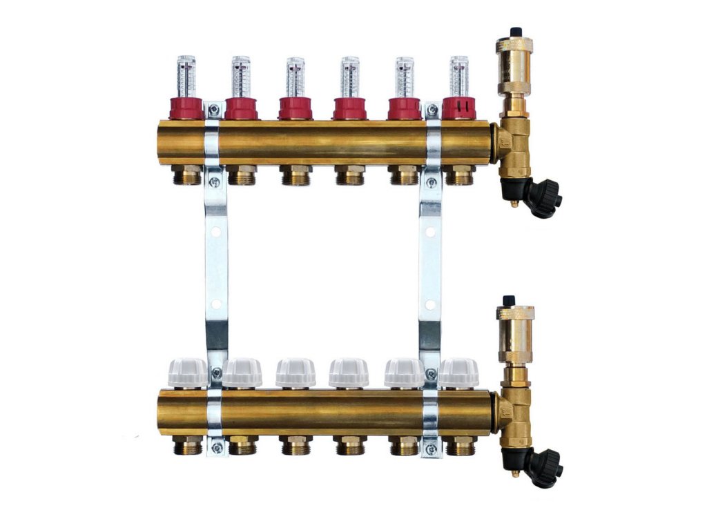 Mosazný 6cestný rozdělovač pro podlahové vytápění, připojení 1"