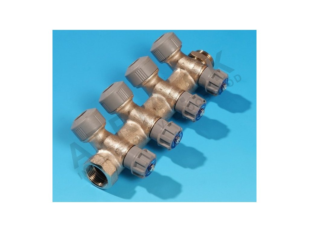 Rozdeľovač na vodu 4-okruhový s ventilom - so sivými prípojkami