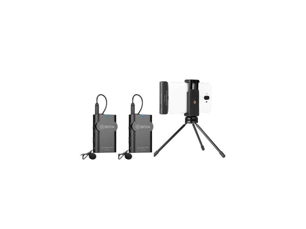 - Mikrofónny systém Boya BY-WM4 Pro K6 sa skladá z bezdrôtového prijímača BY-WM4 PRO-RXU, z 2 vysielačov BY-TX4 Pro a z 2 klopových mikrofónov