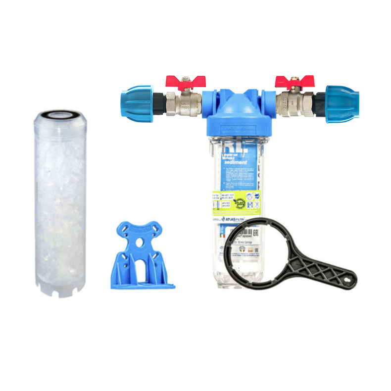 Táto zvýhodnená sada obsahuje: 1x 10" filter senior 1" 1x kľúč k filtru 1+1x vymedzovacie krúžky k vložkám do filtra 1x držiak k filtru Duplex 1x vložka HA 10SX TS s polyfosfat guličkami 2x guľový ventil 1" MF,P 2x prechod na PE 32x1" ZV Popis filtra SENIOR 10" MONO pripojenie 1": Použitie: filtrácia a ošetrenie vody s neutrálnym pH a pitnej vody filtrácia a ošetrenie pitnej vody, ochrana batérie, boilerov, práčok a iných inštalácií Technické použitie: pred-filtrácia, mikro-filtrácia ochrana čerpadiel, kúriacich systémov demineralizácia a odstránenie chlóru ochrana jednotiek reverznej osmózy Technické informácie: Max. pracovný tlak: 8 BAR Max. pracovná teplota: 45°C Nádoba: PET Hlava filtra: PP Tesniaci O-krúžok: EPDM Vstupný/výstupný závit: mosadz CW 614 N Rozmery (V x Š x H) v mm: 325 x 122 x 107 Popis filtračnej vložky HA 10SX TS s polyfosfat guličkami: Filtračná vložka HA 10SX TS s polyfosfat guličkami je zmes fosfátov a polyfosfátov s obsahom kremičitanov vo forme sklovitých priehľadných guličiek, ktoré zabraňujú tvorbe vodného kameňa a obmedzujú korodovanie kovových povrchov. Polyfosfat guličky vytvárájú na vnútornom povrchu potrubí a vyhrievacích telies mikrofilm, ktorý zabraňuje usádzaniu vodného kameňa na vyhrievacích telesách a v prípade mäkkej vody zabraňuje prístupu kyslíka do potrubia, čím zastavuje koróziu. Schválený pre styk s pitnou vodou. Max. prietok l/h: 1 500 Filtračná vložka naplnená 700g polyfosfat guličkami - vhodná do všetkých filtrov veľkosti 10".Dodatočné parametre