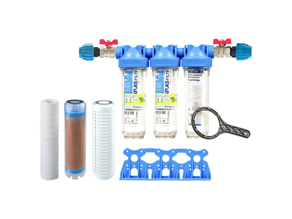 Sada filtra Senior 10" TRIO. Komplet pripojenie 1". Filtrácia nečistôt, redukcia železa a mangánu ( FE SX)