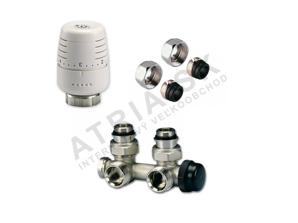 Poznámka: SADA sa skladá z termostatickej hlavice, kompaktnej pripojovacej armatúry s integrovaným termostatickým ventilom a regulačným šróbením, a zverných šróbení na medené alebo viacvrstvové potrubie ALPEX, uťahovací moment pre IVAR.TA 4420 = 20-35 Nm, pre IVAR.TR 4430 = 35-45 Nm.