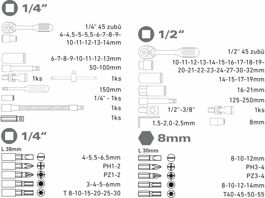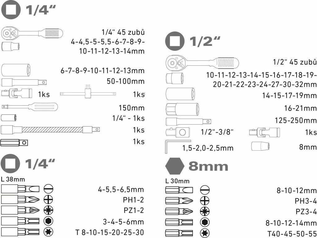 Sada nástrčných a zástrčných kľúčov 94-dielna