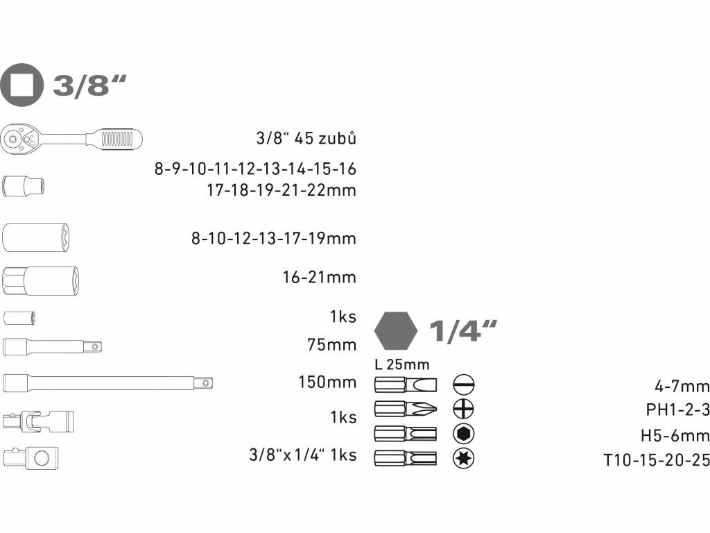 Sada nástrčných kľúčov 39-dielna
