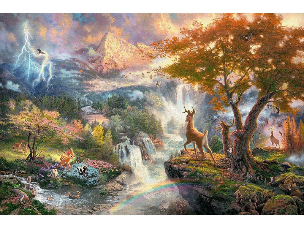 Poskládejte si puzzle s motivem animované pohádky o malém Bambim z nové kolekce Disney, kterou namaloval Thomas Kinkade. Rozměr složeného puzzle cca 69,3 x 49,3 cmDodatočné parametre