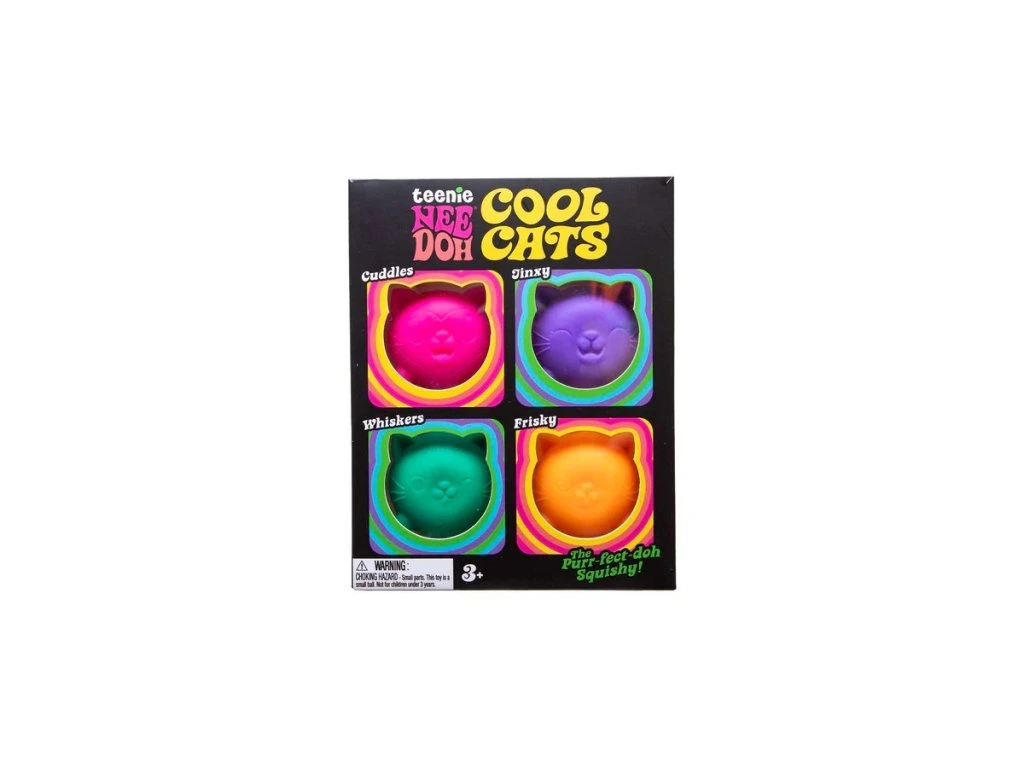 Mini mačkacie hračky Cool Cats Teenie NeeDoh od značky NeeDoh prinášajú zábavný a upokojujúci zážitok z hry. Tieto malé „squishy“ mačičky sú navrhnuté tak, aby padli presne do detskej ruky a poskytli príjemný hmatový vnem pri stláčaní, naťahovaní i tvarovaní.Každá mačička má roztomilé detaily, ako sú ušká a výraz tváre, vďaka čomu pôsobia hravo a originálne. Vďaka špeciálnej výplni z mäkkého, pružného materiálu sa po stlačení vždy vrátia do pôvodného tvaru a sú tak ideálne na opakované používanie.Hračka je vhodná na každodennú zábavu doma aj na cestách. Pomáha zabaviť ruky, podporiť sústredenie a ponúka jednoduchý spôsob, ako si deti môžu oddýchnuť pri pokojovej aktivite. Vďaka kompaktnej veľkosti sa ľahko zmestí do vrecka, batohu alebo školskej tašky.Multipack obsahuje niekoľko malých mačičiek v rôznych farbách a štýloch. Vonkajší materiál produktov NeeDoh je termoplastická guma, vnútorná náplň je polyvinylalkohol (PVA), oba materiály sú netoxické. PVA sa používa aj ako poťah vo farmaceutických prípravkoch a doplnkoch stravy. Hlavné vlastnosti: roztomilé motívy mačičiek s rôznymi výrazminapomáha k znižovaniu stresu a úzkostivyrobené z netoxického materiáluvhodné ako darčekbezpečné a netoxickékompaktná veľkosťvhodné pre deti od 3 rokovDodatočné parametre