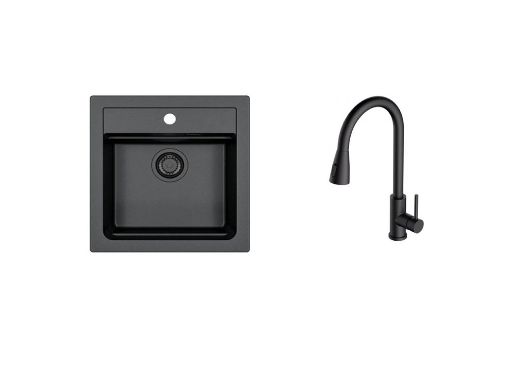 Vestavěný dřez, univerzál. Provedení : granitový dřez Vnější rozměr: 470 x 500 mm Rozměr vaničky: 390 x 340 x 195 mm Sítkový ventil v černém provedení 3 1/2 s přepadem, sifon pro úsporu místa s odbočkou na myčku Úchyty a těsnění pro upevnění dřezu v balení S otvorem pro baterii Předfrézované dva otvory Návod pro instalaci v obrázcích na obale Instalace do skříňky při montáži: I- o šířce 450 mm, U- o šířce 600 mm Váha: 9,7 kg Rozměr balení (mm): 598x584x263 Baterie Primrose Vysokotlaká baterie vytahovací, sprcha rozměr:210x435 mm provedení: černá matná Váha: 1,15 KgDodatočné parametre