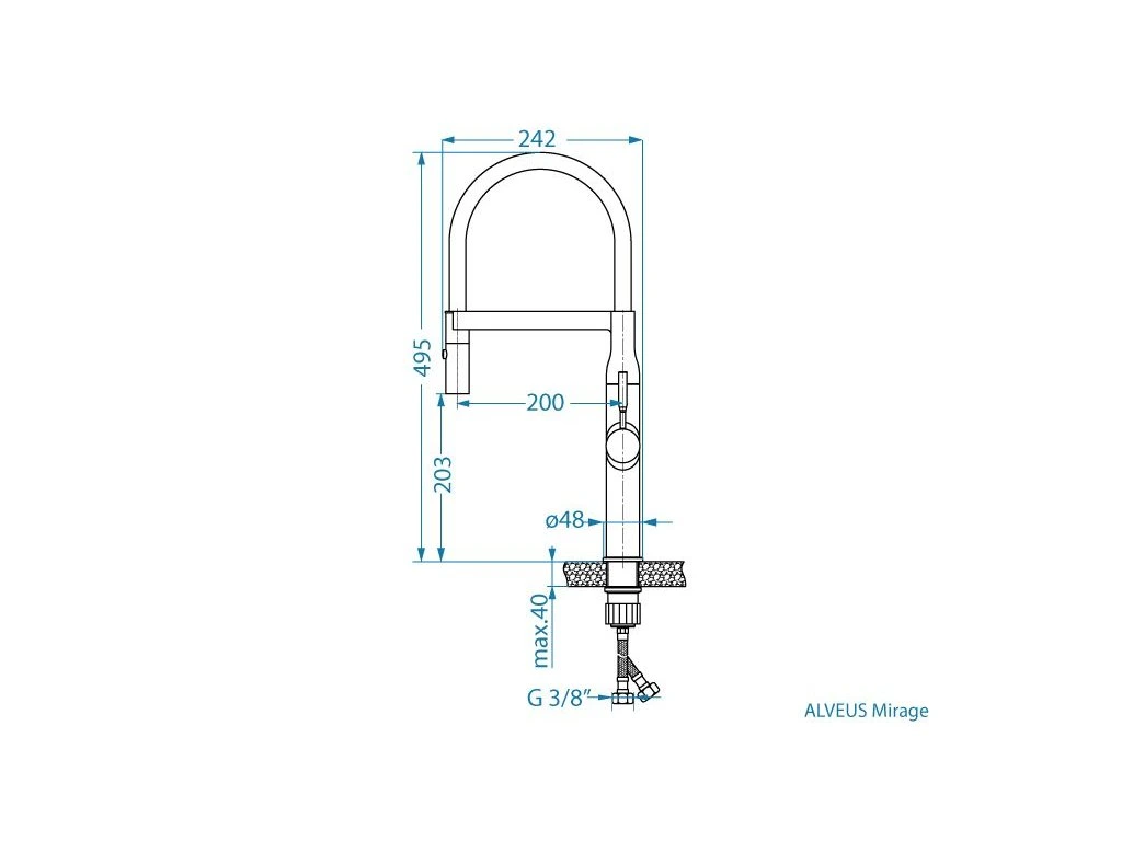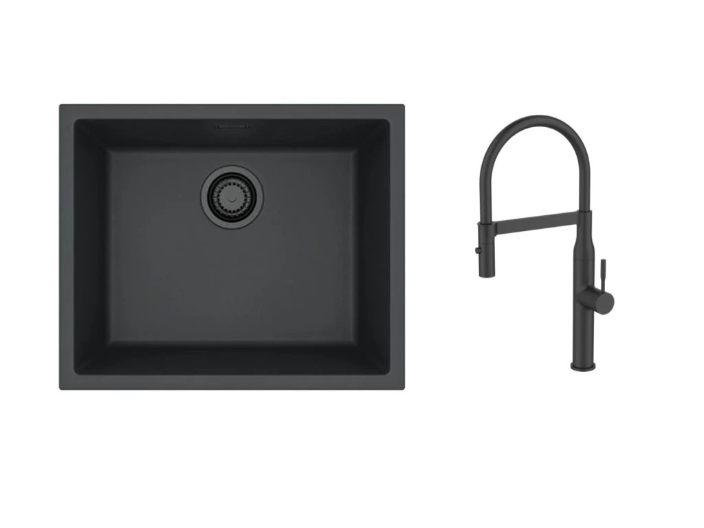 Vestavěný dřez, univerzál. Provedení : granitový dřez bez odkapu Vnější rozměr: 550 x 450 mm Rozměr vaničky: 500 x 400 x 198 mm Sítkový ventil 3 1/2, sifon pro úsporu místa s odbočkou na myčku Úchyty a těsnění pro upevnění dřezu v balení Návod pro instalaci v obrázcích na obale Instalace vrchní I montáž nebo spodní U, velikost skříňky 600 mm Rozměry balení ( mm ): 575 x 680 x 270 mm Váha netto: 9,92 kg Typ: Kuchyňská stojánková baterie Rozměr: 242x495 mm Design: Obloukový tvar s vysokým výtokem pro pohodlné používání Ovládání: Jednopáková, pro snadné míchání teploty a průtoku vody Materiál: Mosaz s vysoce odolnou povrchovou úpravou Otočný výtok: 360° Montáž: Standardní otvor 35 mm Připojení: Flexi hadičky 3/8"Dodatočné parametre