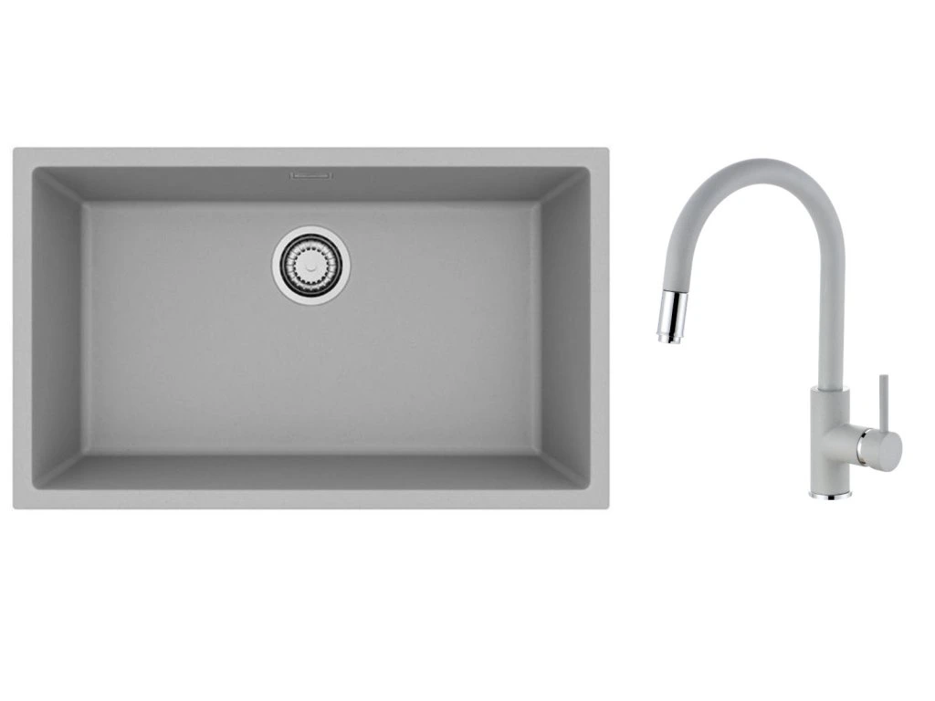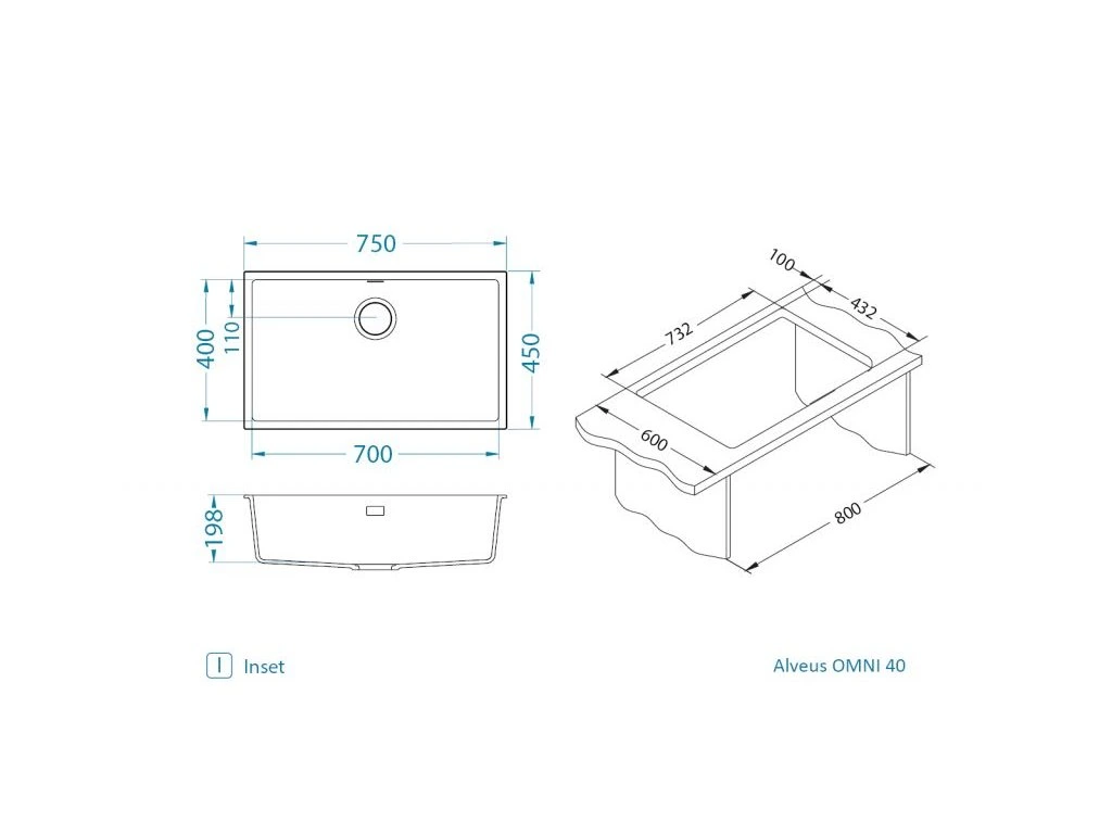Vestavěný dřez, univerzál. Provedení : granitový dřez bez odkapu Vnější rozměr: 750 x 450 mm Rozměr vaničky: 700 x 400 x 198 mm Sítkový ventil 3 1/2, sifon pro úsporu místa s odbočkou na myčku Úchyty a těsnění pro upevnění dřezu v balení Návod pro instalaci v obrázcích na obale Instalace vrchní I montáž nebo spodní U, velikost skříňky 800 mm Rozměry balení ( mm ): 575 x 880 x 270 mm Váha netto: 13,7 kg Vysokotlaká baterie otočné ramínko vytahovací sprška rozměr:207 x 380 mm provedení: barevný nástřikDodatočné parametre