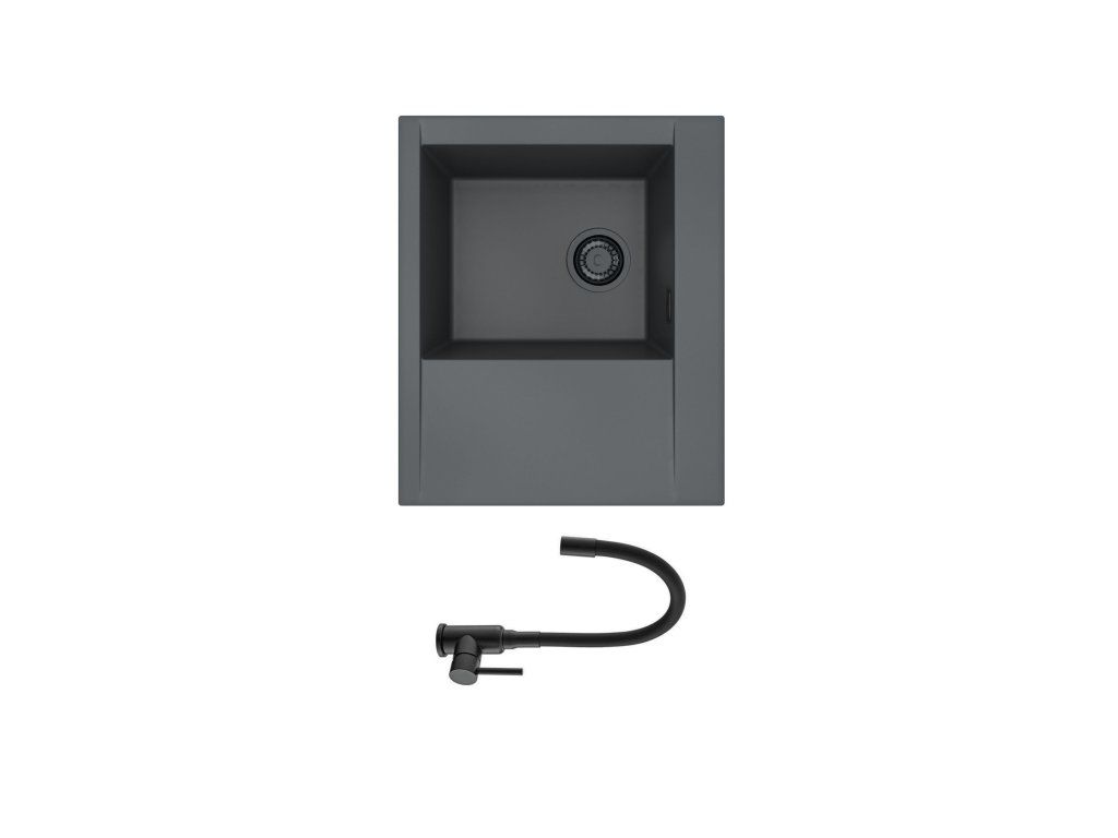 Vestavěný dřez, levý Provedení : granitový dřez s krátkým odkapem Vnější rozměr: 615 mm x 515 mm Rozměr vaničky: 340 x 400 x 198 mm Sítkový ventil 3 1/2 s přepadem, sifon pro úsporu místa s odbočkou na myčku Úchyty pro upevnění dřezu v balení Předfrézované otvory pro baterii Návod pro instalaci v obrázcích v balení Instalace do skříňky při montáži: I- o šířce 450 mm Váha: 12,5 kg Vysokotlaká baterie otočné ohybné ramínko rozměr:210 x 340 mm (š x v) provedení: barevný nástřik Dřezová baterie se silikonovým ramínkem je praktickým pomocníkem do každé kuchyně. Díky flexibilnímu ramínku si nastavíte proud přesně do místa, kam potřebujete. Po spuštění vody, ramínko nemusíte držet, protože flexi ramínko bude držet proud stále ve stejné nastavené poloze. Dřezová baterie je vyrobena z kvalitních komponentů - srdcem baterie je keramická kartuše. Baterie vybavena plastovým perlátorem, který zajistí jednak provzdušnění proudu a také se oproti kovovým perlátorům snáze čistí od usazenin vodního kamene. Délka hadiček: 40 cm, připojení G 3/8Dodatočné parametre