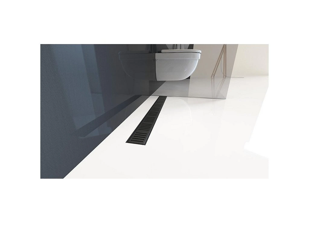 Simple - Podlahový žľab s okrajom pre perforovaný rošt, 950mm, matný čierny plast