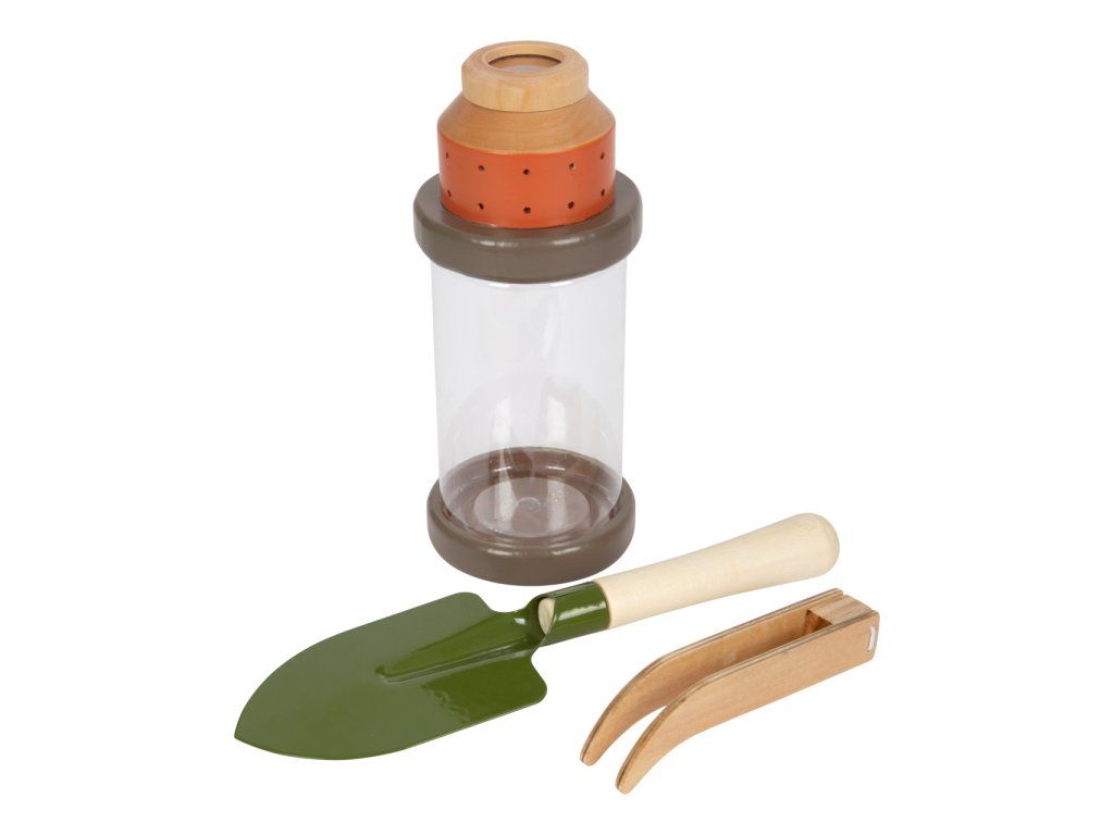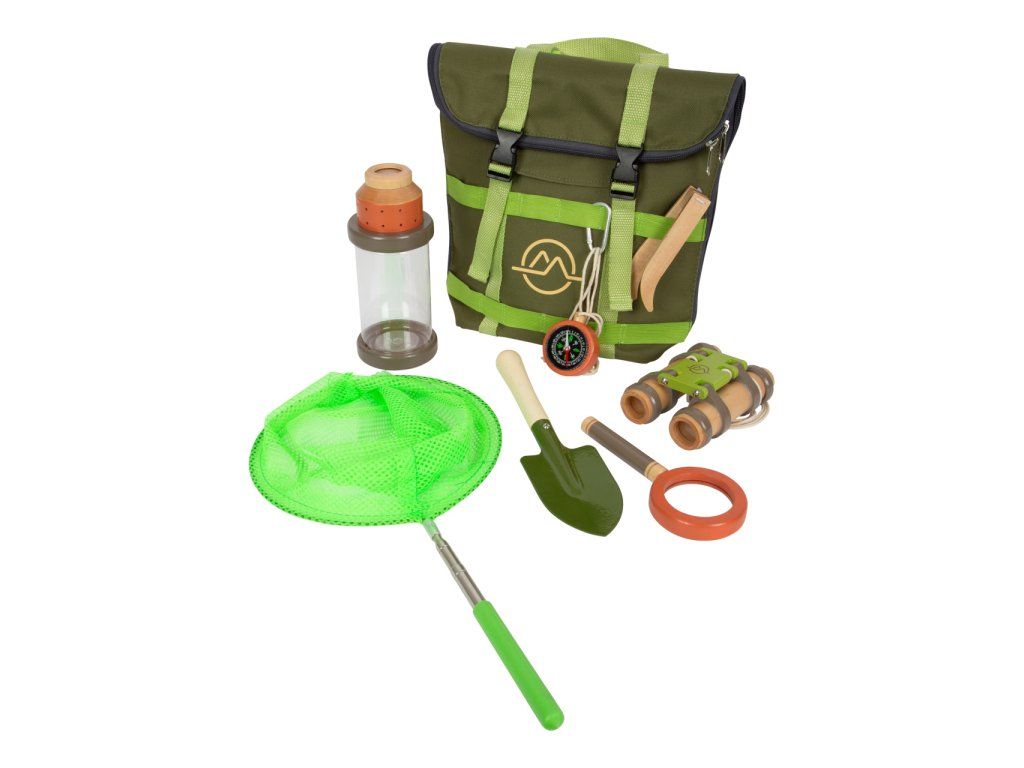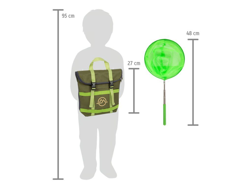 Pre milovníkov dobrodružstva! Tento odolný batoh sa stane ideálnym spoločníkom na cestách prírodou. Zmestí sa do neho pohodlne všetko vybavenie: nádoba na hmyz so skrutkovacím viečkom a integrovanou lupou, drevený ďalekohľad, sieť na hmyz s teleskopickou tyčkou, kompas na šnúrke, lupa, pinzeta, lopatka, karabína. Na batohu je praktické, že ho je možné vďaka zipsu otvoriť dokorán, má nastaviteľné ramenné popruhy a veľa pútok, na ktoré môžete zavesiť vybavenie.Deti si s ním užijú výlety, výstupy, expedície, za pomoci vybavenia môžu bádať a objavovať nové veci na záhrade, v lese alebo na lúke. Viditeľné drevo, zaoblené hrany a farby prírody, to sú hračky z radu „Discover“. Hlavné vlastnosti: odolný batoh pre mladých prieskumníkov s pútkaminastaviteľné ramenné popruhyv balení prieskumné vybavenienádoba na hmyz s viečkomsieť na motýle je možné upevniť k batohubatoh má široký zipspekný dizajn a zaoblené hranyhodí sa k ostatným produktom z radu „Discover“Dodatočné parametre