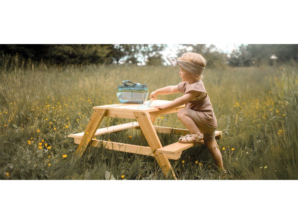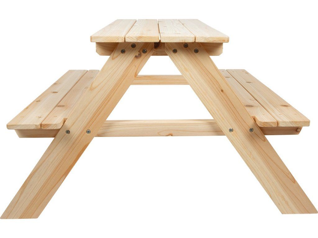 Či už sa jedná o záhradný piknik, tvorenie alebo spoločné hranie - tento robustný detský stôl z masívneho dreva je neuveriteľne všestranný. Ako vonkajšia zostava, skladajúca sa z dvoch lavíc a stola, zaujme svojim prirodzeným vzhľadom a dizajnom navrhnutým na mieru deťom. Skvele sa však hodí aj na vnútorné využitie ako stabilný umelecký alebo hrací kútik. Konštrukcia s roztiahnutými nohami zaisťuje maximálnu stabilitu a bezpečnosť pri každodennom používaní. Vďaka zaobleným hranám a pohodlnej výške sedadla kombinuje tento piknikový stôl funkčnosť, odolnosť a jednoduchú krásu. Stane sa tak obľúbeným miestom na záhrade, terase i balkóne, kde ponúkne dostatok priestoru na jedlo aj kreatívne aktivity.Stôl je vyrobený z odolného masívneho dreva v neošetrenom stave, čo vám dáva možnosť prispôsobiť jeho vzhľad pomocou farieb alebo moridiel podľa vlastného vkusu. Na zaistenie dlhej životnosti pri vonkajšom umiestnení odporúčame drevo ošetriť vhodným ochranným náterom. Hlavné vlastnosti: stabilný detský piknikový stôl vyrobený z robustného masívneho drevaideálna voľba pre záhradné stolovanie, detské oslavy alebo vonkajšie kreatívne tvorenieprírodné prevedenie s jemne zbrúseným povrchom a oblými hranami pre maximálnu bezpečnosťintegrované lavičky na oboch stranách zaisťujú pevnú konštrukciu a pohodlné sedenievhodné na vonkajšie použitie s možnosťou ďalšej povrchovej úpravy náterom podľa vlastného výberujednoduchá montáž a kompaktné rozmery prispôsobené výške detíDodatočné parametre