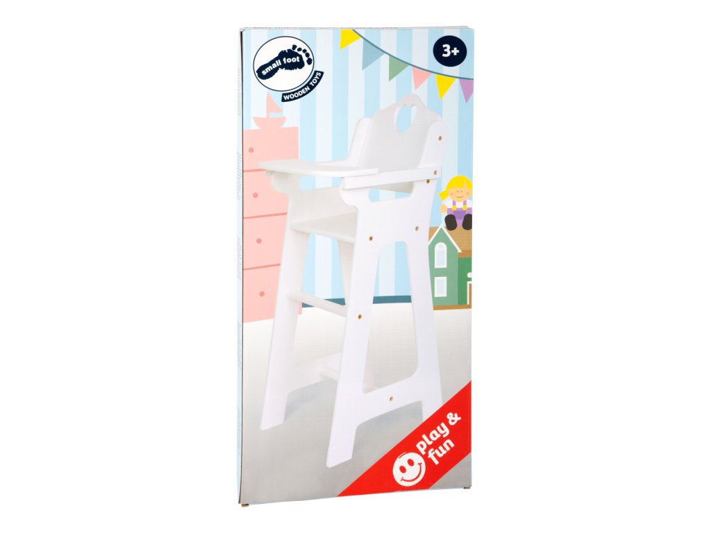 Príďte na večeru, prosím! Táto stolička pre bábiky zo stabilného, bielo lakovaného dreva okamžite zapôsobí na zodpovedných rodičov bábik! Táto vysoká stolička s roztomilým srdiečkom na operadle je štýlovým doplnkom do kútika pre bábiky a so svojou výškou 63 cm je vhodná k jedálenskému stolu! Výrobok vyžaduje montáž. Dodávané s obrázkovým návodom na zostavenie. Hlavné vlastnosti: stolička pre bábiky vhodná k jedálenskému stoluDodatočné parametre