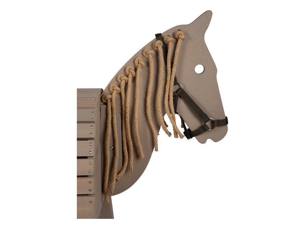 To je ale krásny koník! Deti si často prajú vlastného koňa as týmto dreveným koníkom im toto prianie môžete splniť. Užijú si veľa aktívnej zábavy vo vnútri aj vonku na záhrade. Koník v šedej farbe je ošetrený farbou odolnou proti poveternostným vplyvom. Hriva a chvost sú vyrobené z prírodného sisalu a lákajú na zaplietanie.Chrbát koňa je navrhnutý tak, aby sa naň zmestilo skutočné sedlo a sedák. Praktický schodík umožňuje aj tým najmenším deťom ľahko na koňa nasadnúť a rozkročené nohy poskytujú bezpečnosť a stabilitu. V zadnej časti sa nachádza veľký úložný priestor s dvierkami, ktorý ponúka množstvo miesta na uloženie uzdy a ďalšieho vybavenia. Deti sa naučia základy o koňoch, poníkoch a jazde na nich. So sisalovou hrivou a copom si deti môžu precvičiť jemnú motoriku. Hlavné vlastnosti: aktívna zábava vo vnútri aj vonkuhriva a chvost zo sisalustabilné a bezpečnévhodné pre sedák a skutočné sedlo.prvotriedny materiál odolný poveternostným vplyvoms úložným priestoromintegrovaný schodík pre ľahké nasadanievrátane uzdyDodatočné parametre
