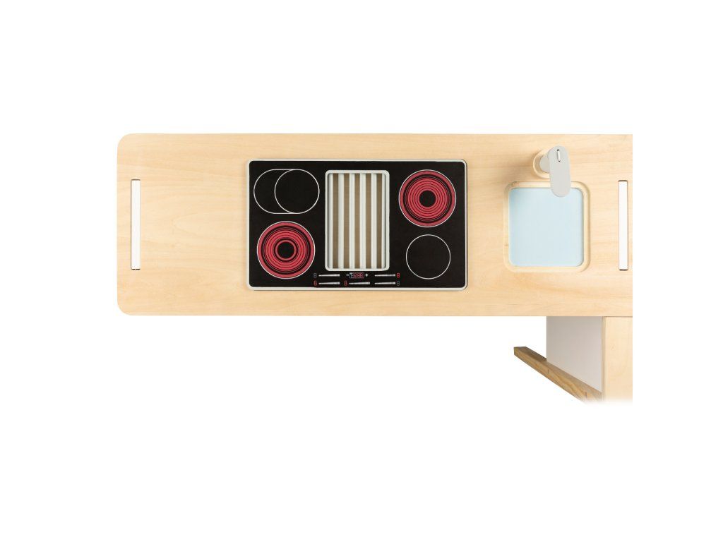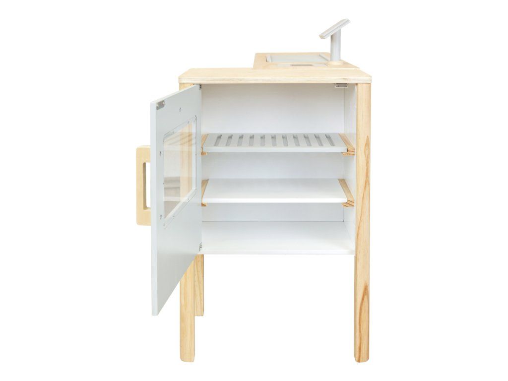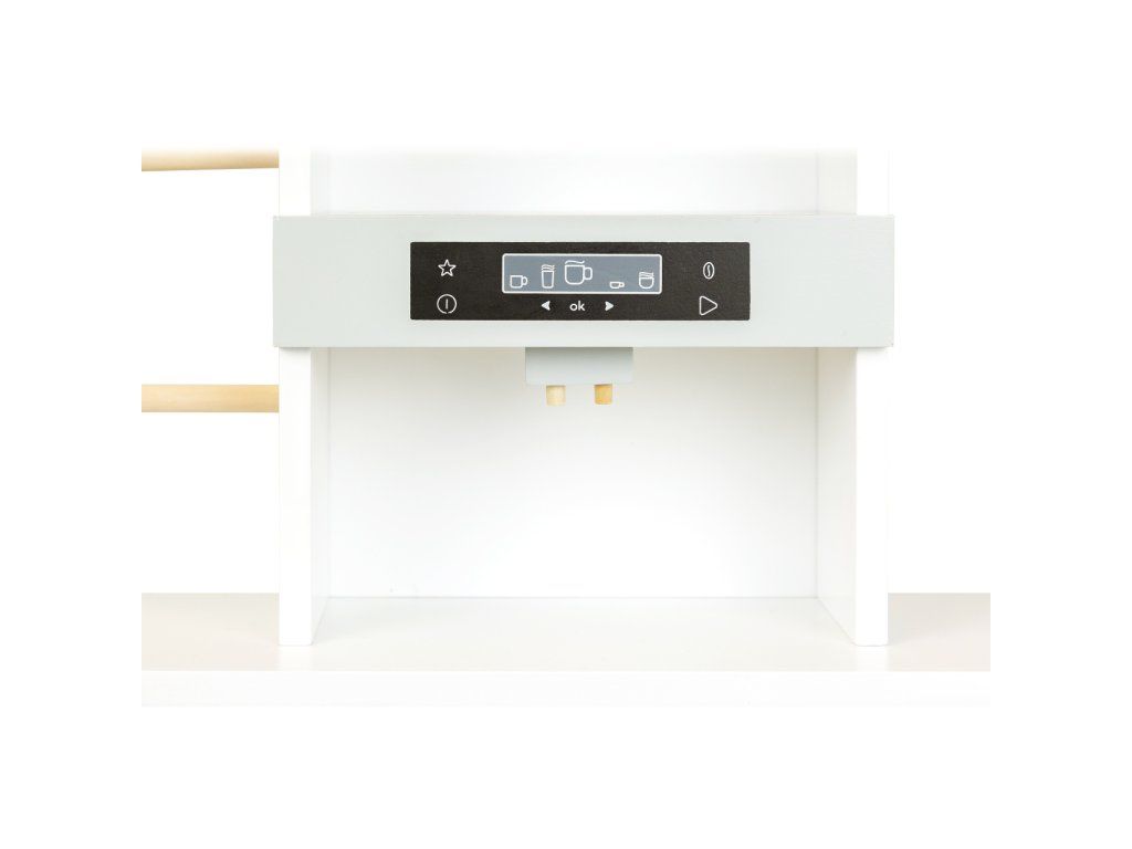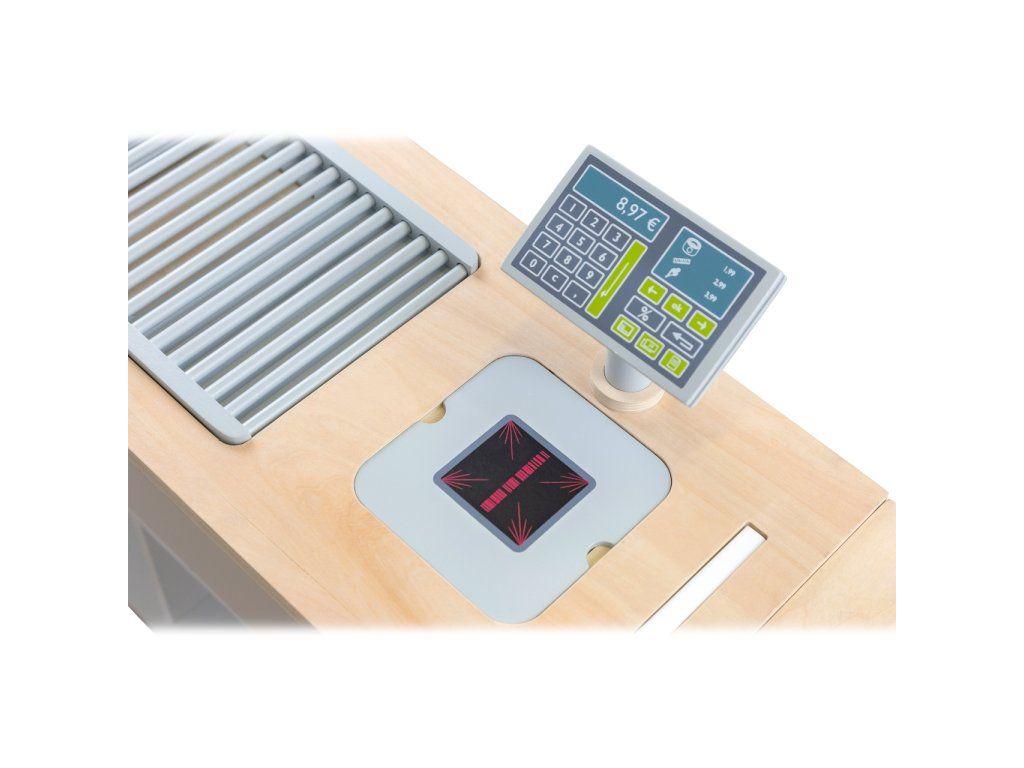 Prodejní stánek, kiosek, nebo bufet? Velký stánek v moderním skandinávském designu je modulární a multifunkční, skládá se z mnoha částí, které můžete přestavět během pár okamžiků a uspořádat i s ohledem k volnému prostoru u Vás doma. Variabilní herní prvky lze využít několika způsoby, pokladnu přestavěte na dřez, varnou desku na grill, z trouby vytvořte lednici. Ve výbavě dále naleznete váhu, výklopné police, popisovací tabule a také kávovar i úložné prostory se 2 bedýnkami. Markýza malého pultu se dá sklopit pro úsporu místa (její potah se může barevně lišit). Stánek nabízí dostatek prostoru pro hru více dětí najednou. Imitováním všedních situací se děti naučí jaké to je být prodejcem, zákazníkem, jaké je to vařit nebo jednat s lidmi. Výrobek vyžaduje montáž, dodáváno s obrázkovým návodem k sestavení. Hlavné vlastnosti:multifunkčné, rôznorodé využitiemodulárna konštrukcia s variabilným vybavenímrozvíja komunikačné a sociálne zručnosti detíDodatočné parametre