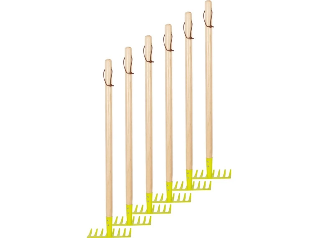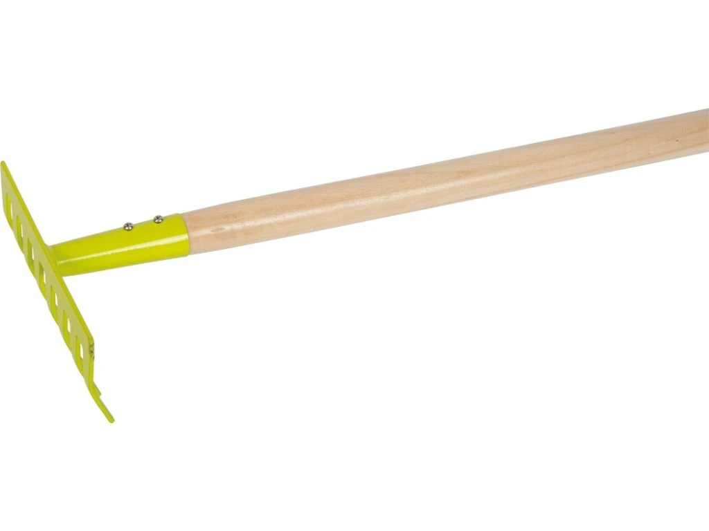 Cena je uvedená za 1ks. S týmito detskými hrabľami je zahradničení ľahké aj pre tie najmenšie deti. Šikovné hrable presvedčí svojou robustnosťou a atraktívnym vzhľadom. Váha a drevená rukoväť sú dokonale prispôsobené potrebám detí. S hrabľami vo sviežej zelenej farbe môžu malí záhradkári pomôcť zhrabať lístie, trávu, malé vetvičky alebo rovnať záhon. Akonáhle je práca hotová, je možné hrable úhľadne zavesiť pomocou praktického povrázku. Perfektné záhradné náradie na vonkajšiu sezónu! Hlavné vlastnosti: hmotnosť a tvar prispôsobený potrebám detírozvíja motoriku a vzťah k prírodevyrobené z kovu, drevená násadaDodatočné parametre
