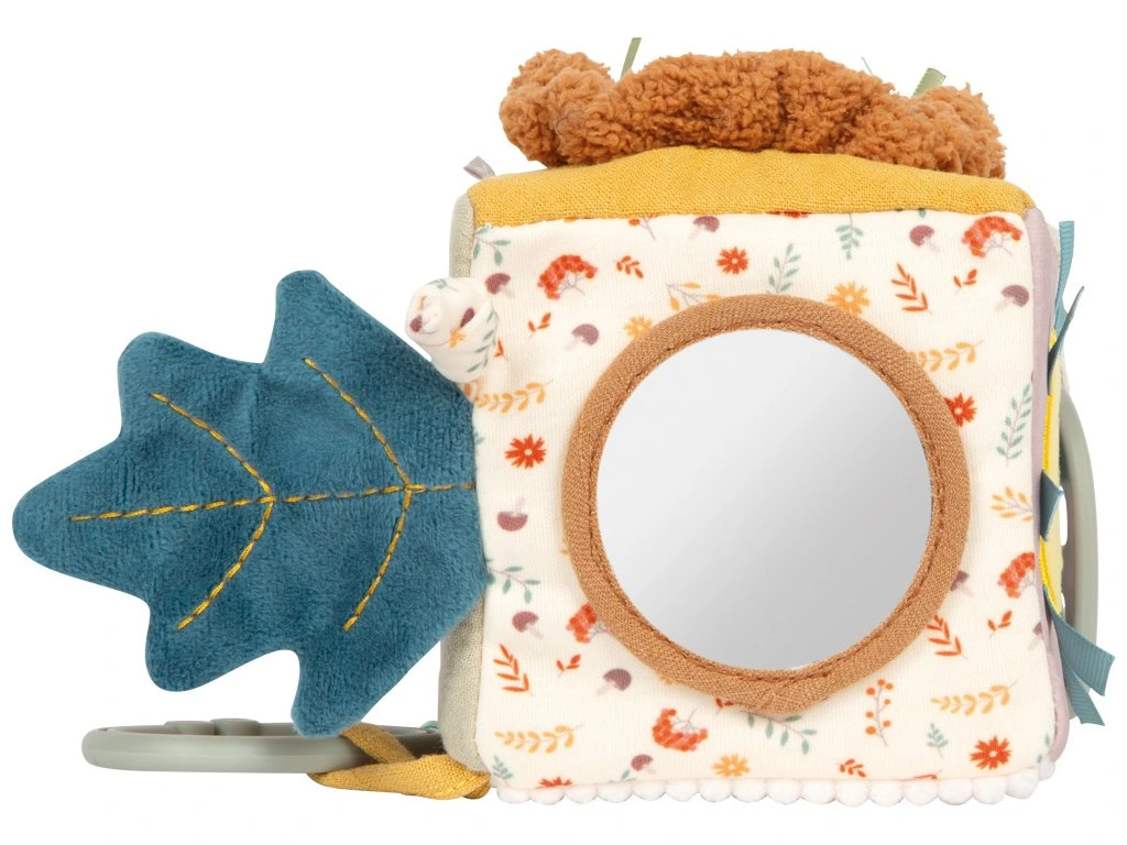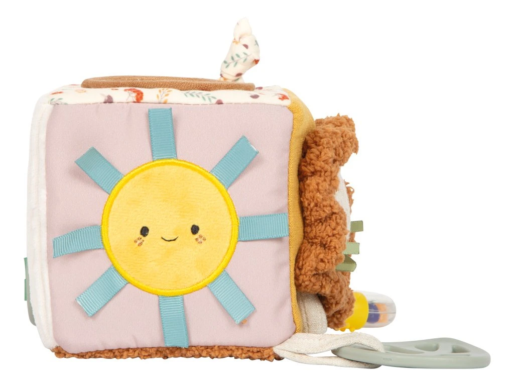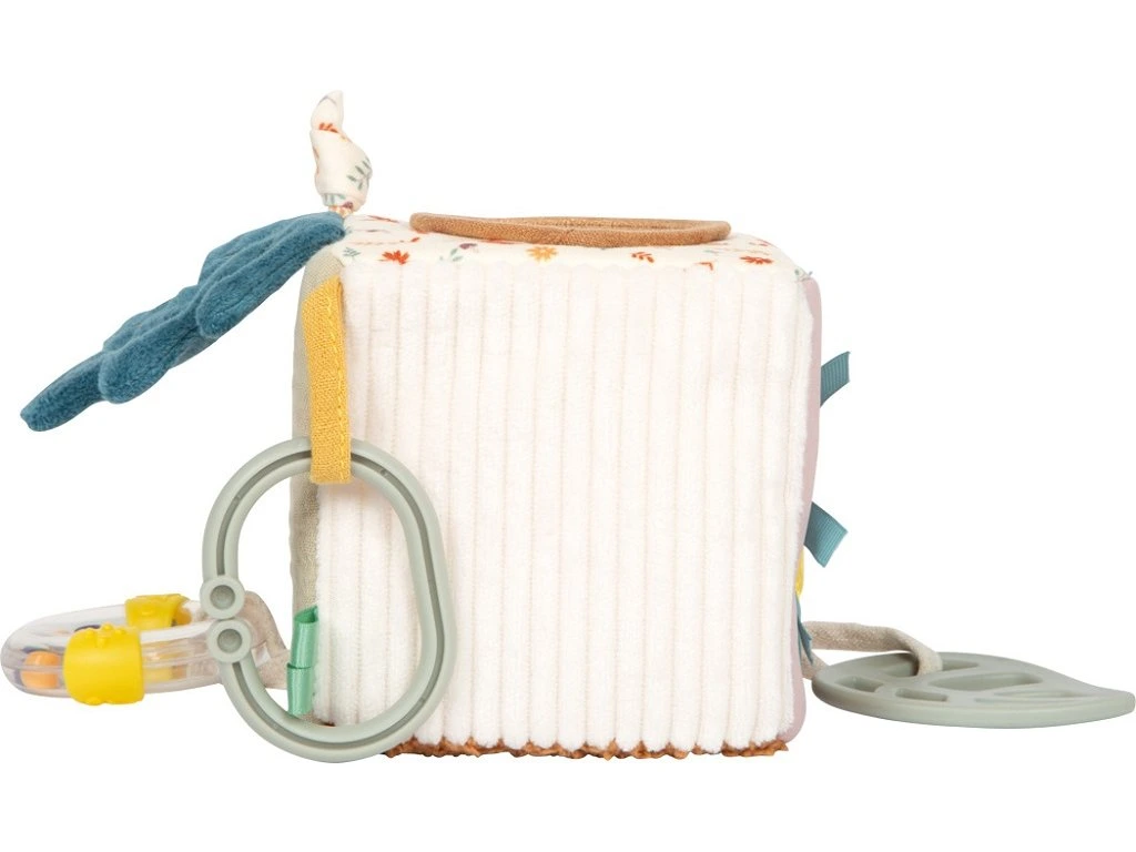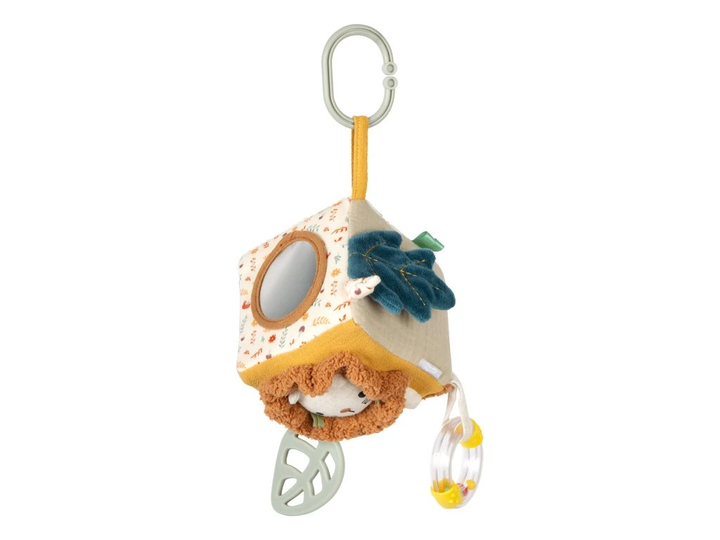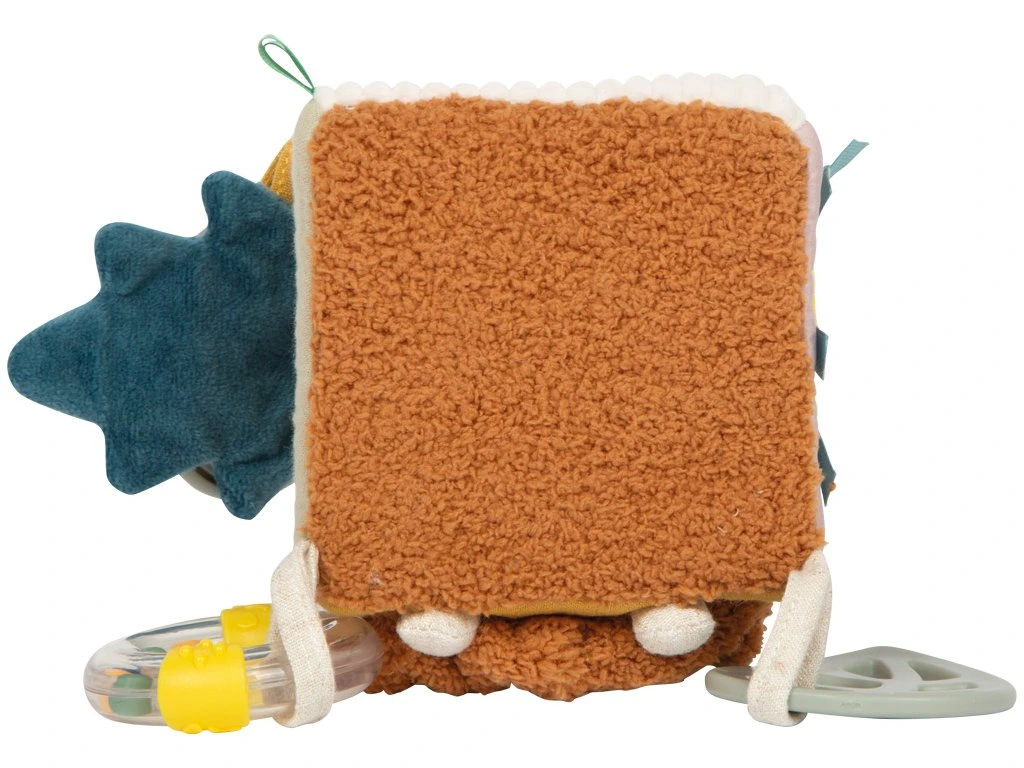 Dotýkaj sa, počúvaj, objavuj!Táto mäkká hracia kocka je všestrannou hračkou pre bábätká, ktorá ponúka množstvo podnetov k hre i objavovaniu. Šuštiace prvky, zabudovaný zvonček, hrkálka aj hryzátko vytvárajú rozmanité zvuky a hravou formou podporujú raný vývoj dieťaťa. Rôznorodé textúry látok stimulujú hmat, zatiaľ čo uchopovanie, stláčanie a otáčanie jednotlivých strán kocky prirodzene rozvíja jemnú motoriku. Vďaka praktickému pútku je možné kocku ľahko pripevniť na kočík, autosedačku alebo hrazdičku, takže je vždy po ruke. Kompaktný a mäkko polstrovaný tvar robí kocku bezpečnú a príjemnú na maznanie aj pre tých najmenších. Veselý motív levíčka, roztomilý dizajn a harmonické farby z nej robia obľúbenú hračku každého bábätka. Skvele sa hodí ako doplnok k ďalším produktom z kolekcie Little Lion a je ideálnym darčekom k narodeniu dieťaťa alebo ku krstu. Hlavné vlastnosti: multifunkčná látková hracia kocka s veselým motívom levíčkakaždá strana ponúka iné prvky – napr. zvonček, hrkálka alebo hryzátkobezpečná pre malé detské ručičkypodporuje zmysly – predovšetkým sluch, hmat a úchoprozvíja jemnú motoriku hravou formoumäkké a príjemné prevedenie ideálne na maznaniepraktické pútko pre ľahké pripevnenie na kočík, autosedačku a pod.vhodná od narodeniaDodatočné parametre