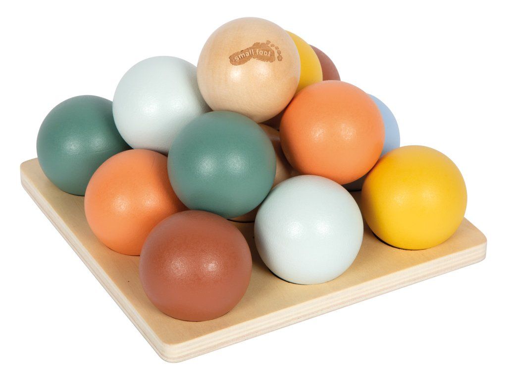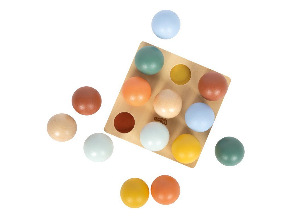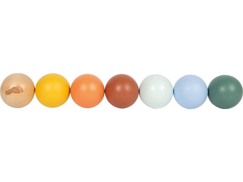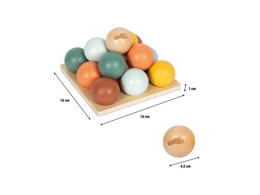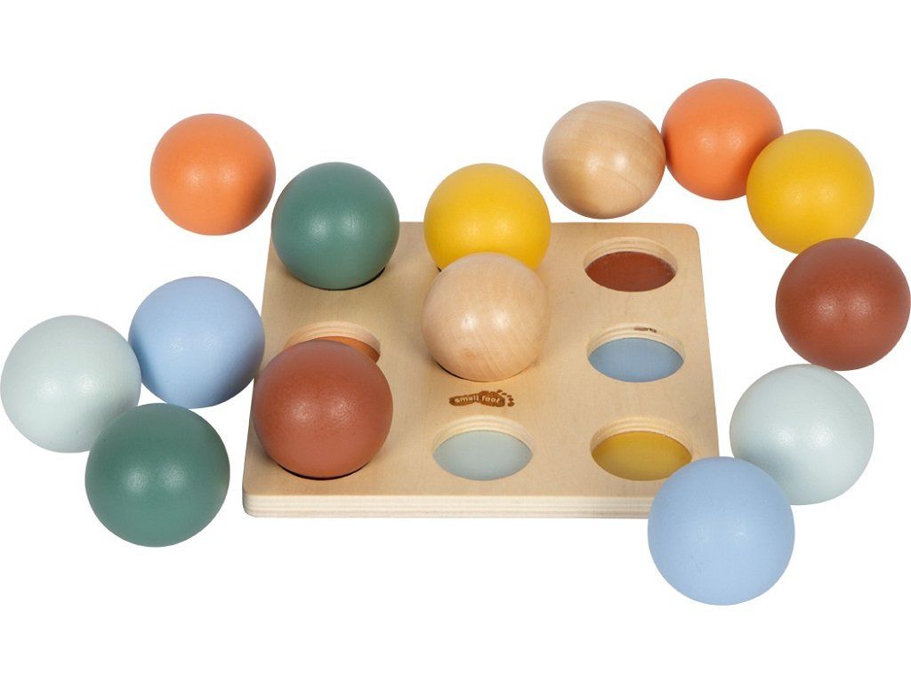 Skladanie, triedenie a objavovanie farieb - s touto Montessori hrou si deti hravým spôsobom rozvíjajú obratnosť aj kreativitu. Súprava vyrobená zo 100% dreva s certifikáciou FSC® sa skladá z pevnej základnej dosky s deviatimi priehlbinami a 14 hladkých drevených guličiek v jemných farbách. Stavanie pyramídy, triedenie podľa farieb alebo experimentovanie s vlastným usporiadaním cielene trénuje jemnú motoriku, sústredenie a koordináciu ruka-oko.Táto vzdelávacia hračka zaujme svojou jasnou štruktúrou a rozmanitými možnosťami využitia. Hladký povrch guličiek poskytuje príjemný zmyslový zážitok, zatiaľ čo voľné experimentovanie s rôznymi kombináciami podporuje logické myslenie a trpezlivosť. Vďaka svojmu nadčasovému dizajnu a dôrazu na rozvoj zručností je hračka ideálna pre domáce použitie aj do vzdelávacích zariadení. Hlavné vlastnosti: montessori triediaca hra so 14 farebnými guličkami a drevenou doskouzákladná doska s 9 farebne zladenými priehlbinami pre presné umiestňovanieguličky je možné triediť podľa farieb, skladať na seba alebo usporiadať do pyramídypodporuje vizuálne vnímanie, jemnú motoriku a koordináciu ruka-okoučia poznávanie farieb, základy počítania a pochopenia poriadku a štruktúryIšpiruje k experimentovaniu, kombinovaniu a kreatívnej hrehladký a hmatovo príjemný tvar guličiek je bezpečný pre detské rukyvyrobené zo 100% certifikovaného dreva FSC® Značka a certifikát FSC® (Forest Stewardship Council) zaručuje, že drevo, z ktorého bol výrobok vyrobený, nebolo vyťažené nelegálne a pochádza z lesov obhospodarovaných šetrným či prírode blízkym spôsobom, v ktorom sú dodržiavané prísne environmentálne a sociálne požiadavky. Značka FSC® na výrobku znamená, že svojim nákupom pomáhate chrániť lesy a podporujete šetrné, zodpovedné či prírode blízke hospodárenie, vďaka ktorému sú naše lesy stabilnejšie, zdravšie, majú prirodzenú druhovú skladbu a lepšie odolávajú negatívnym následkom klimatických zmien.Dodatočné parametre