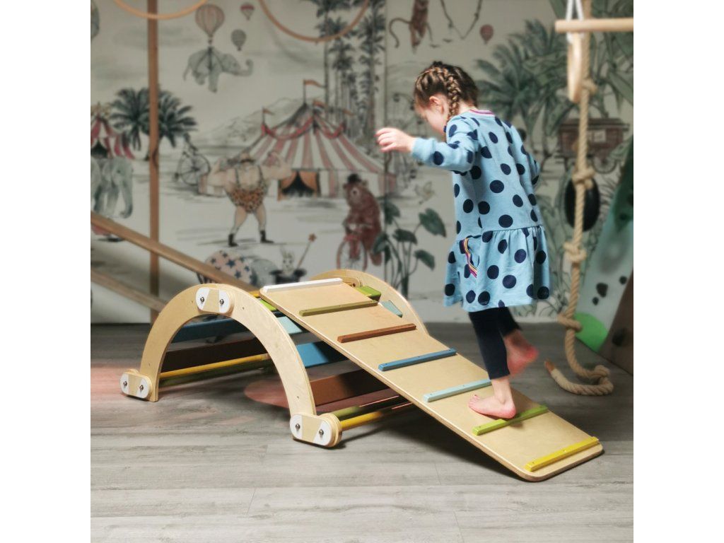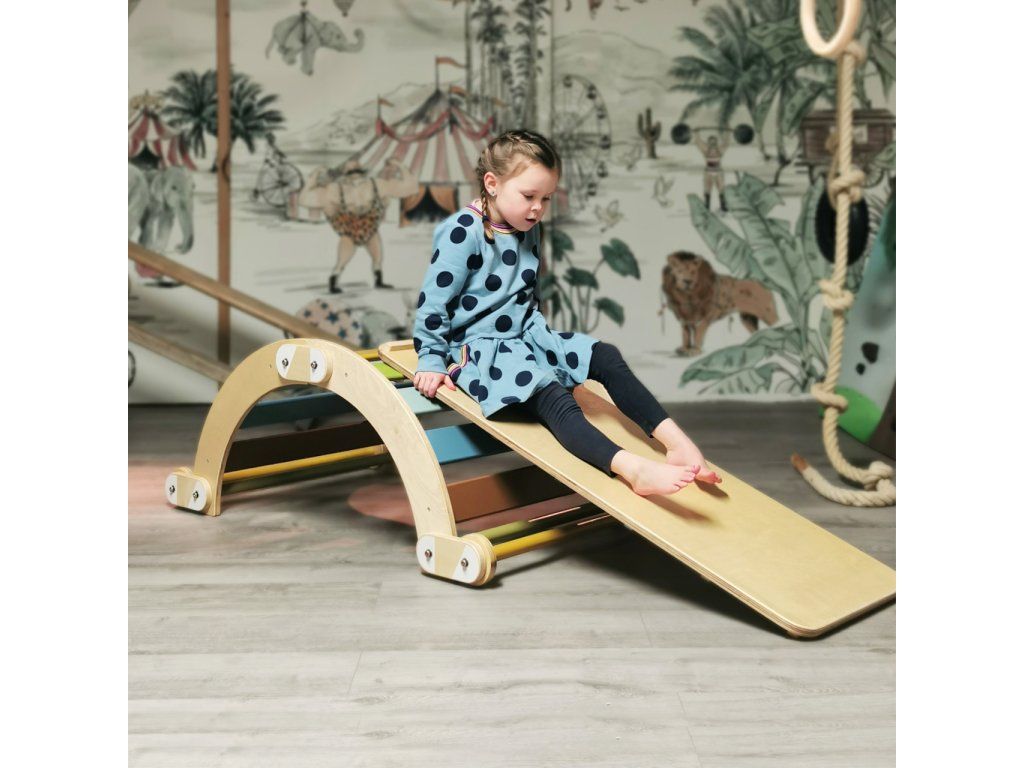Na šmýkačku sadnúť, pripraviť, ísť! Táto obojstranná kĺzačka je vyrobená z pevného dreva, v kombinácii s preliezacou rebrinou a hojdačkou Adventure ju môžete tiež použiť ako domácu kĺzačku, most alebo šikmú plošinu. Hračka je praktická v tom, že môžete upraviť jej úroveň obtiažnosti podľa veku a schopností dieťaťa.Pri kombinácii s ostatnými výrobkami z radu Adventure môžete vytvoriť kreatívnu gymnastickú telocvičňu priamo u vás doma. Jednoduchý dizajn a tvar, moderné farby a mnoho prírodného dreva, bude sa hodiť do každej izbičky! Hlavné vlastnosti: obojstranná kĺzačka z pevného drevakompatibilný s ďalšími výrobkami z radu „Adventure“rozdielne úrovne obtiažnostitrénuje rovnováhu a koordináciuvhodné aj na terapeutické účelyjednoduchý dizajn a tvar, moderné farby a mnoho prírodného drevaDodatočné parametre