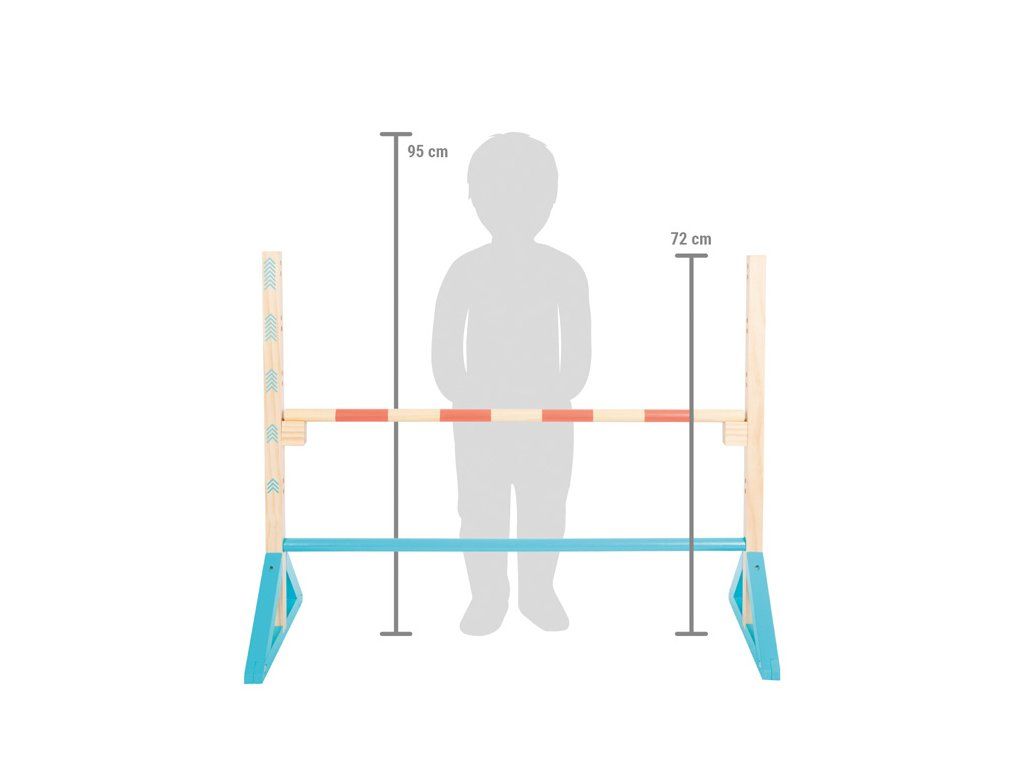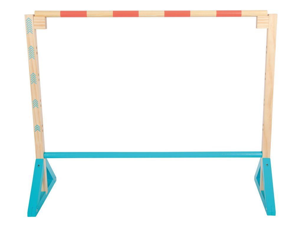 Kto skočí najvyššie? Táto prekážka pre deti je vyrobená z dreva. Je vhodná pre mnoho cvičebných hier na záhrade, v telocvični alebo doma. Či už ako traťová prekážka, ako prekážka pre kone, alebo ako tyč na skok do výšky. Drevená prekážka podporuje zábavu z cvičenia a je vhodná aj pre psie agility s vašim milovaným štvornohým kamarátom. So zrozumiteľným výškovým značením, ktoré je ľahko pochopiteľné aj pre menšie deti bez znalosti čísel. Výška skoku sa môže pohybovať medzi 20 – 70 cm. Moderné trendy farby robia zo skákacej prekážky pre deti absolútny pútač medzi outdoorovými hračkami. Výšku prekážky je možné ľubovoľne nastaviť a obtiažnosť meniť. Hlavné vlastnosti: odolné drevené prevedenievhodné pre mnoho pohybových her vonku i uvnitřlze použít per psi agilityveľkosť: 20-70 cmDodatočné parametre