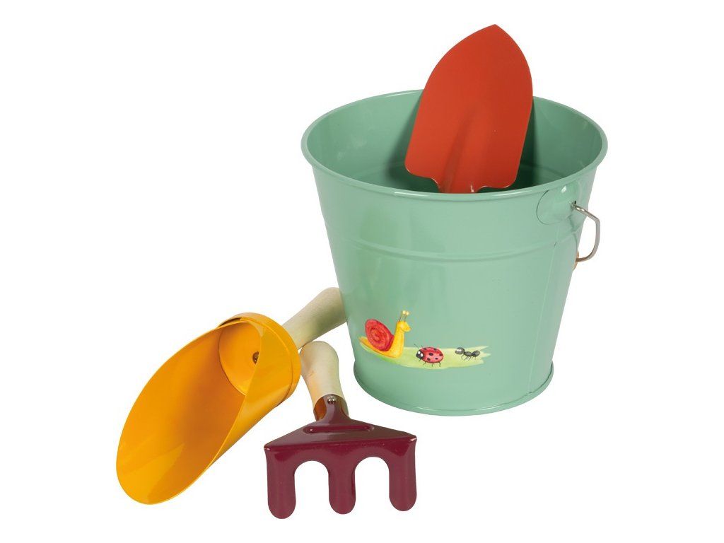 Sada záhradného náradia s vedierkom „Tiny Garden“ poteší všetkých malých záhradníkov i staviteľov piesočných hradov. Pevné náradie z kovu a dreva je navrhnuté presne pre detské ruky, a kovové vedierko s veselými zvieracími motívmi dodáva celej sade hravý šmrnc.Či už deti rýľujú, vsádzajú, prenášajú vodu, alebo tvarujú hrad z piesku, budú mať všetko potrebné pekne po ruke. Vďaka svojej praktickej veľkosti sa ľahko prenášajú a využijú sa kdekoľvek – od záhradky až po pláž. Hlavné vlastnosti: 4dielna sada: 2x lopatka, hrable, kovové vedierkorobustné prevedenie z kovu a dreva, ideálne pre malé rukytrendy farby a roztomilé motívy zvieratiekrozvíja motoriku, tvorivosť a vzťah k prírodevšestranné využitie – na stávkovanie, kopanie, tvarovanie aj prenášanievhodné na záhradu, pieskovisko aj plážDodatočné parametre